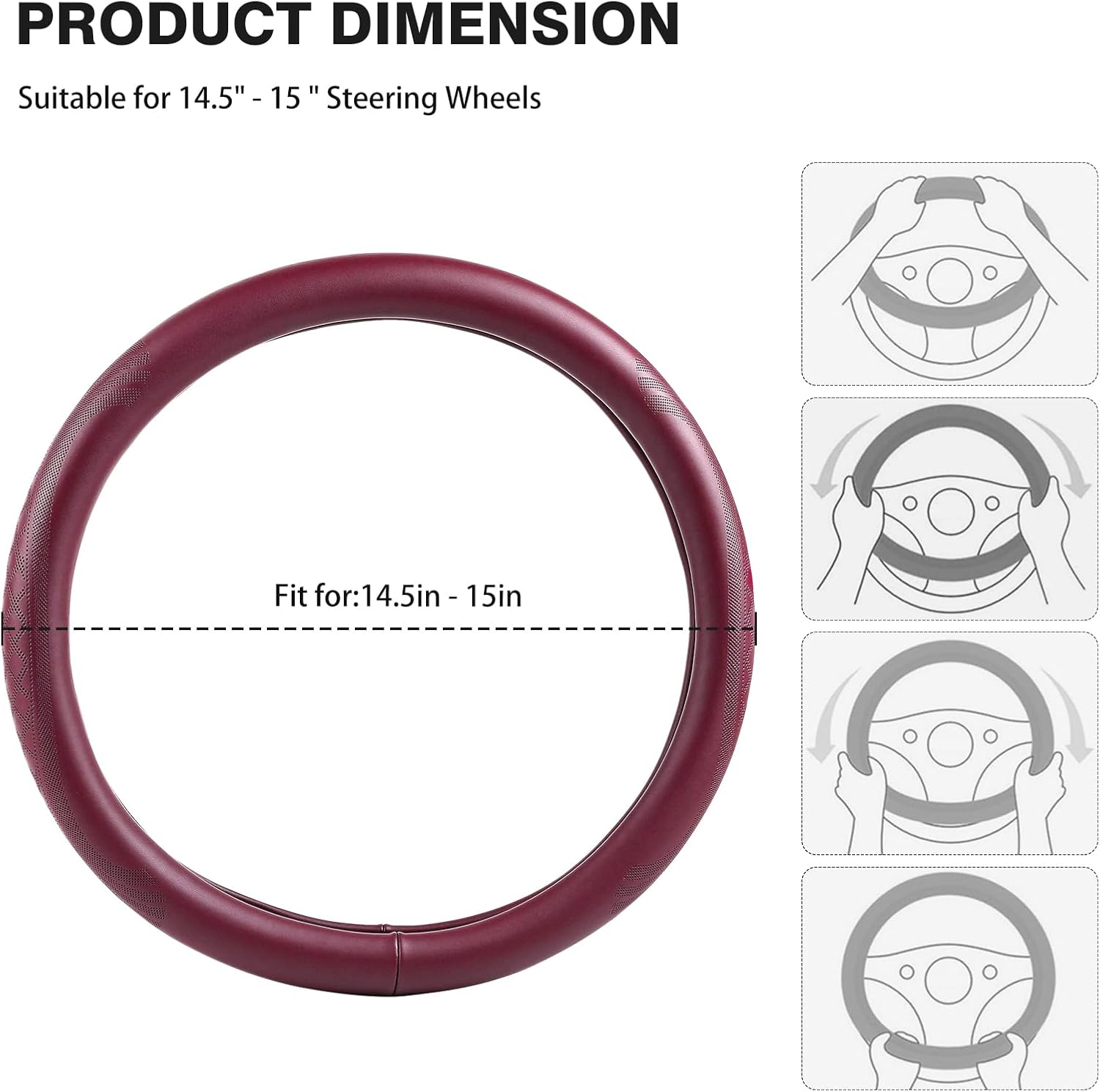 - 【Complete package】:The wine red real leather steering wheel cover is made of high-end cowhide. It is intact packaging, which keeps the original appearance of the product, without folds, and looks more beautiful.