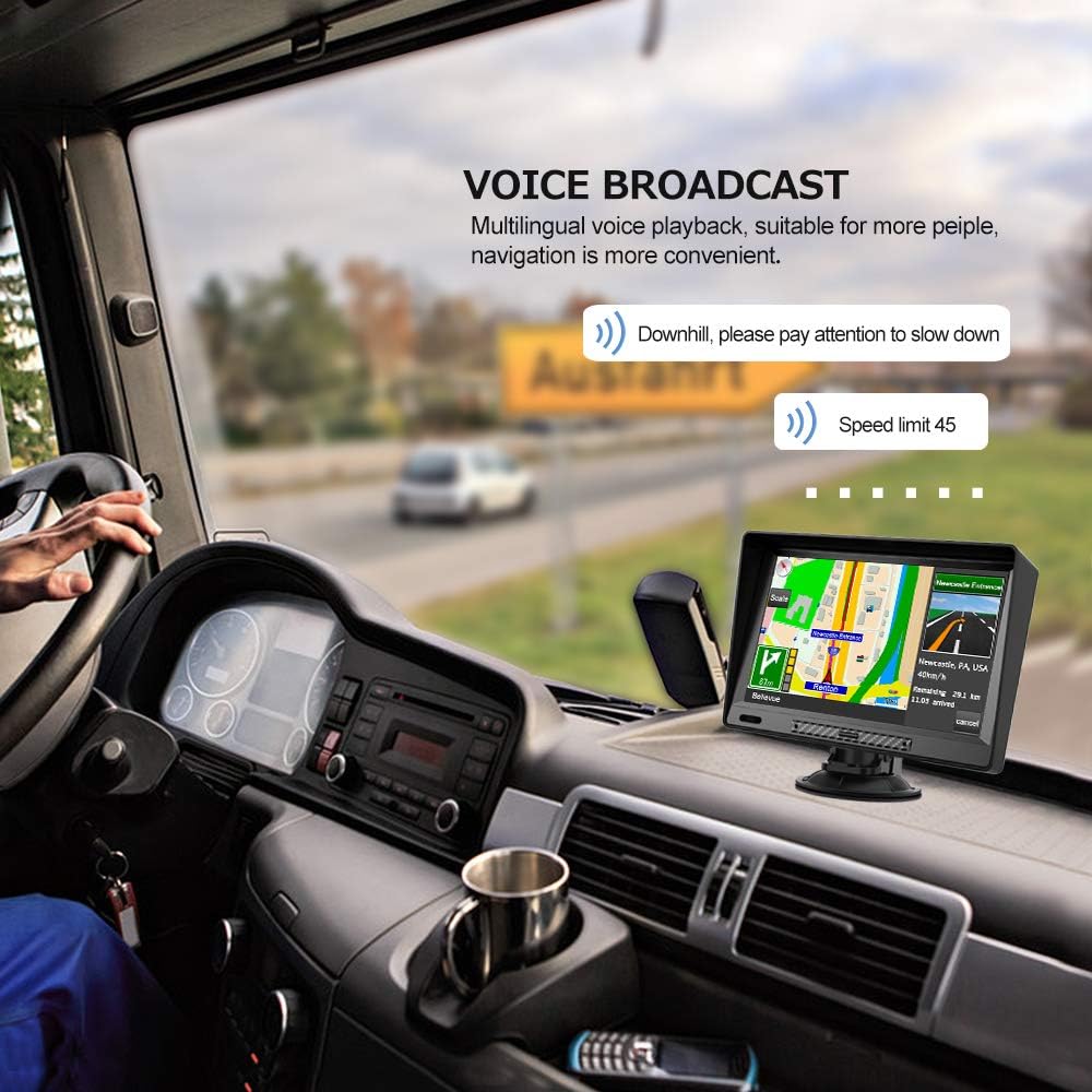 - 【Customized Route】 GPS navigation supports four route options: fast/ green/ short/ convenient; truck gps can customize the route according to the weight, length, height and width of the vehicle to avoid roads with width/height /weight restrictions.