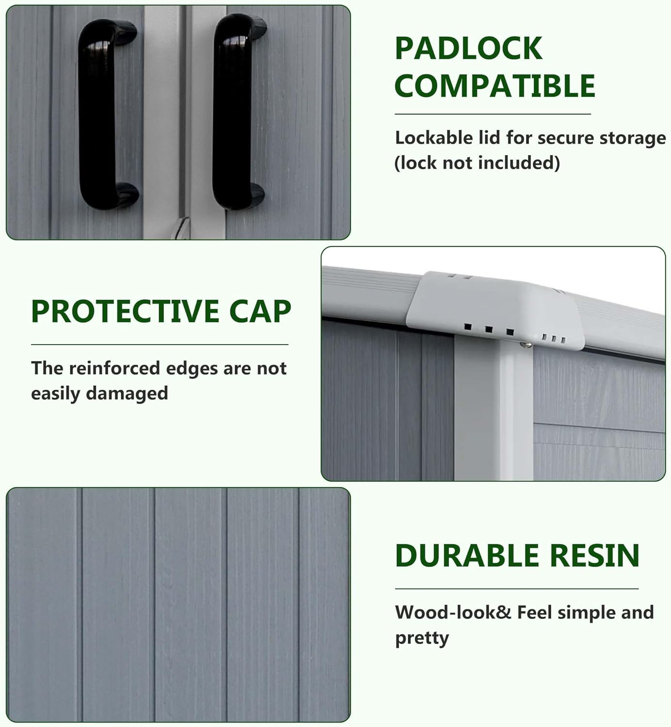 - Simple Assembly: This resin tool shed comes with clear assembly instructions and the necessary installation tools, making the setup process quick and straightforward. It is ideal for various outdoor settings, such as your backyard, garden, pool area, or garage,offering you convenient outdoor storage solutions