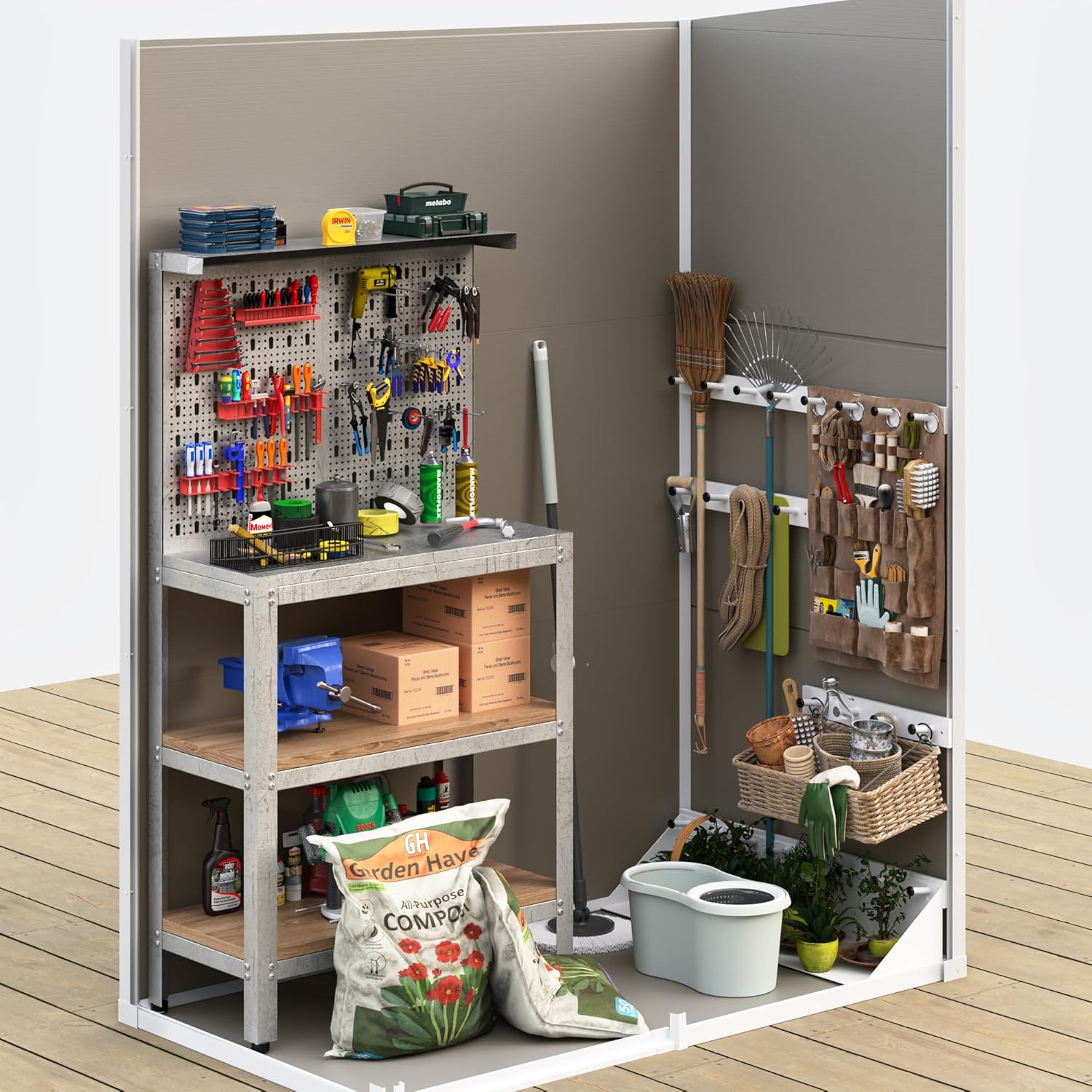 - STURDY FLOOR & WINDOW: Equipped with a sturdy floor, our outdoor storage cabinet effectively prevents moisture from seeping into the structure, safeguarding your belongings from potential damage caused by dampness, mold, or rot. The window design facilitates ventilation and natural light. It allows the visibility of tools from the outside and enhances the aesthetics of the shed