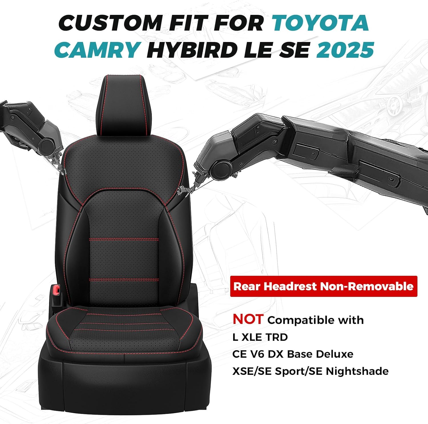 - 【Custom Car Seat Covers 1:1】: Precisely cut and custom tailored to camry seat covers for a glove-like fit. Exclusively fit for Toyota Camry Seat Covers LE SE 2025. Since they have the same or similar seat size. (Non-Removable Rear Seat Headrest, NOT Fit for XLE XSE)