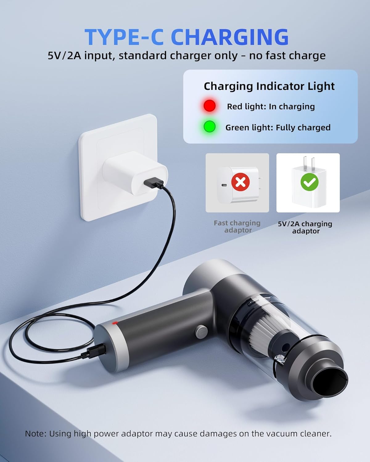 - LARGE DUSTBIN CAPACITY:This mini vacuum cleaner features a 160ml dustbin that’s perfectly sized for a full cleaning session. With the one-click release, you can empty it in seconds—no need to touch the dirt. The washable filter is easy to clean, with extra HEPA filter available, you don't need to worry about the replacement