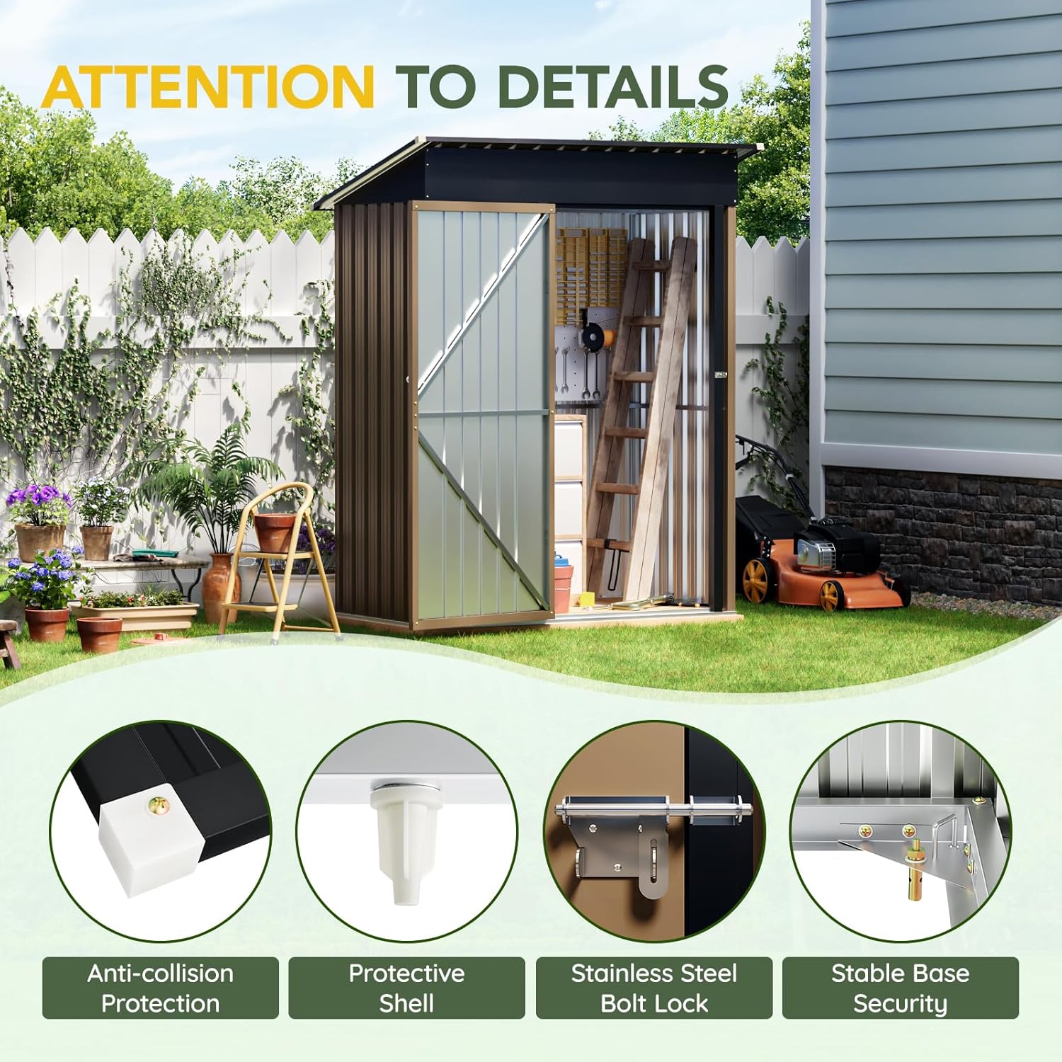 5x3FT Vertical Outdoor Steel Storage Shed, Lockable Doors, Compact Metal Tool Shed for Garden, Backyard, Patio, Utility, and Bike Storage,Brown
