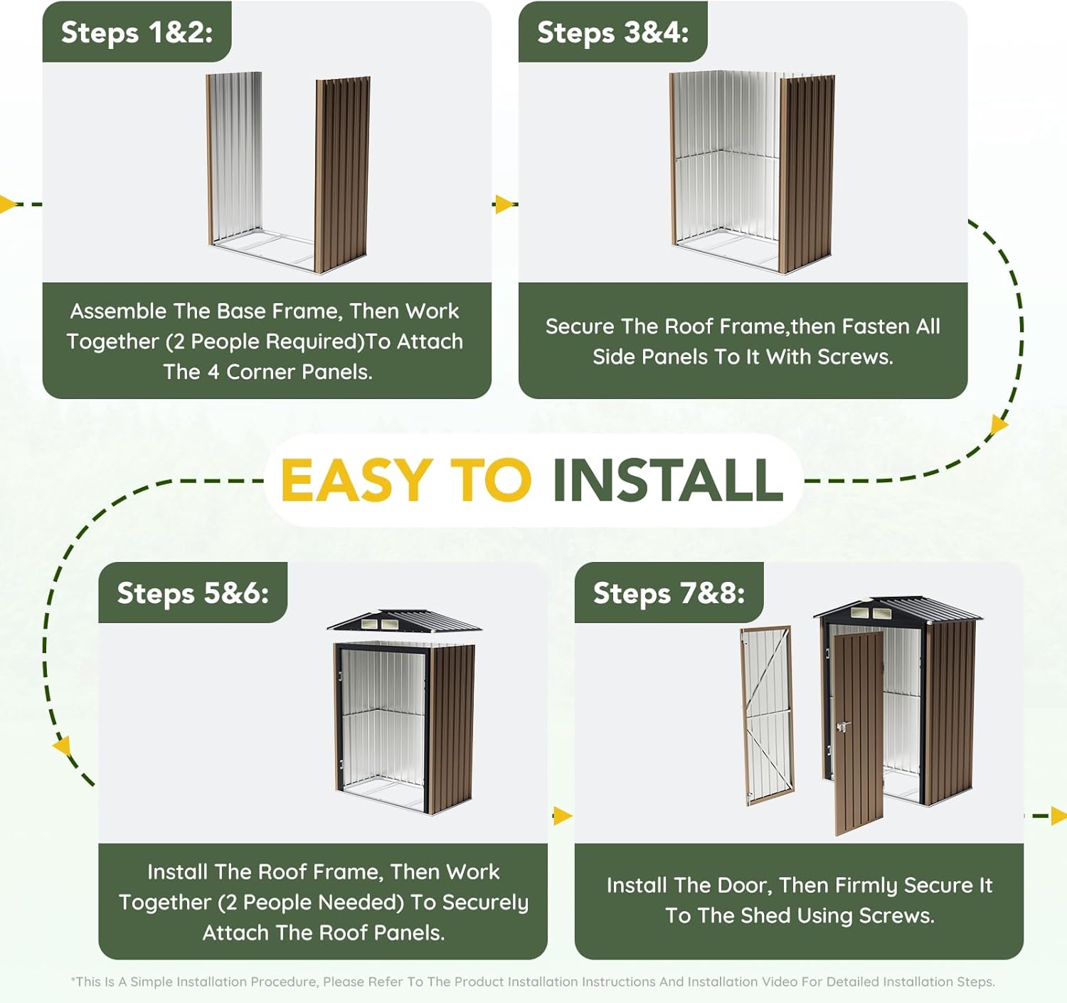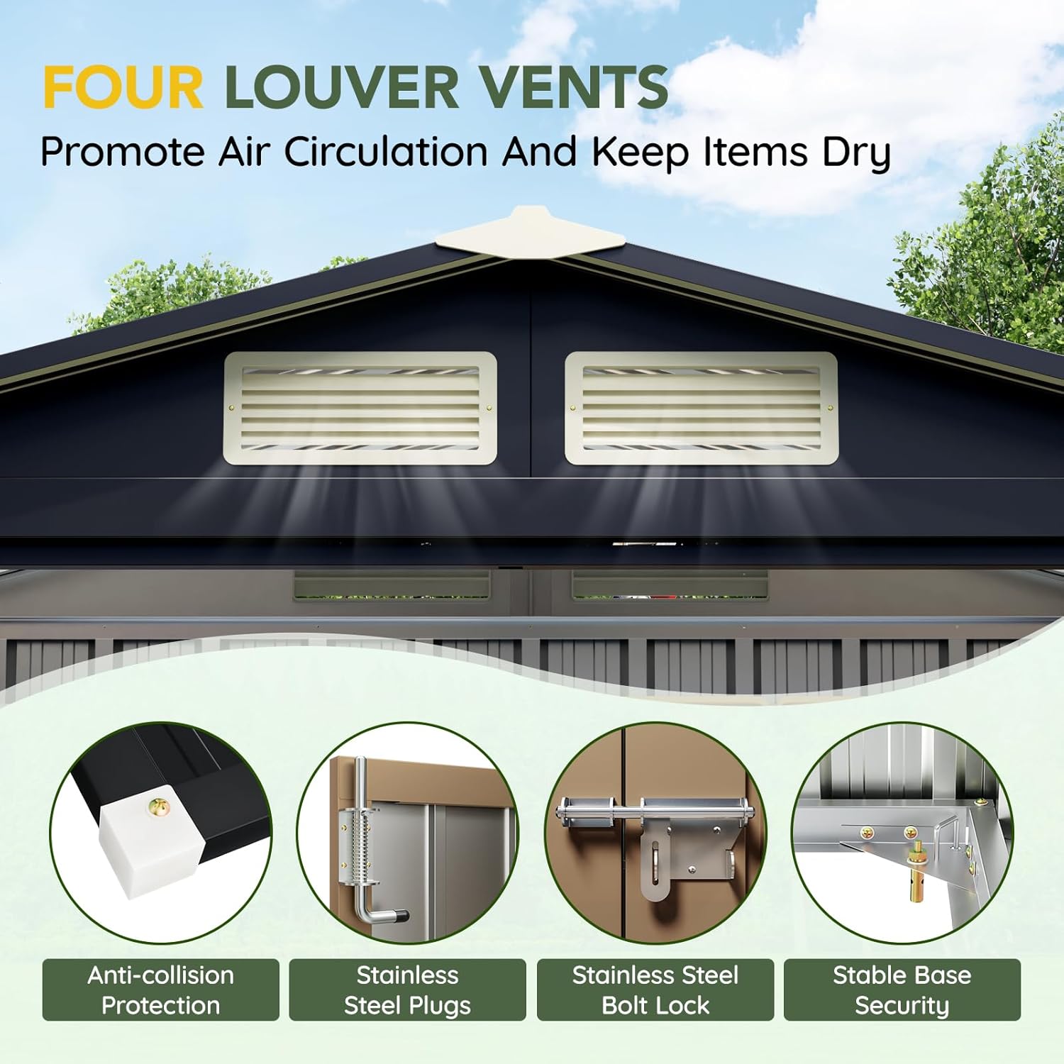 - Durable Construction: Crafted from galvanized steel, this shed is rust-resistant and weatherproof, ensuring long-lasting durability even in tough outdoor conditions.