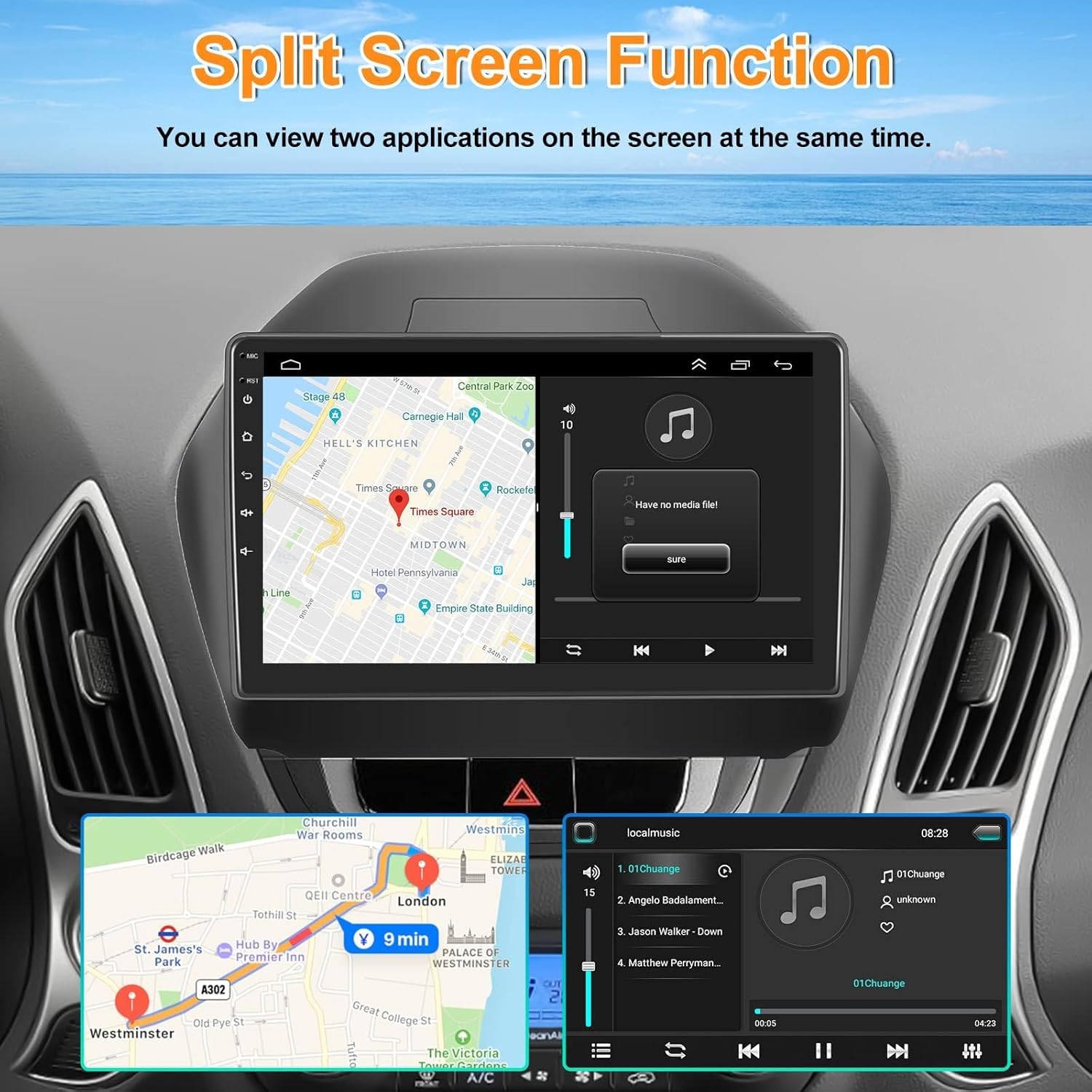 SIXTOP 1+32G Android Car Stereo for Hyundai Tucson IX35 2010 2011 2012 2013 2014 2015 Head Unit 10.1 inch Touch Screen Multimedia Player GPS Bluetooth WiFi FM Mirror Link Split Screen Rear Camera&Mic