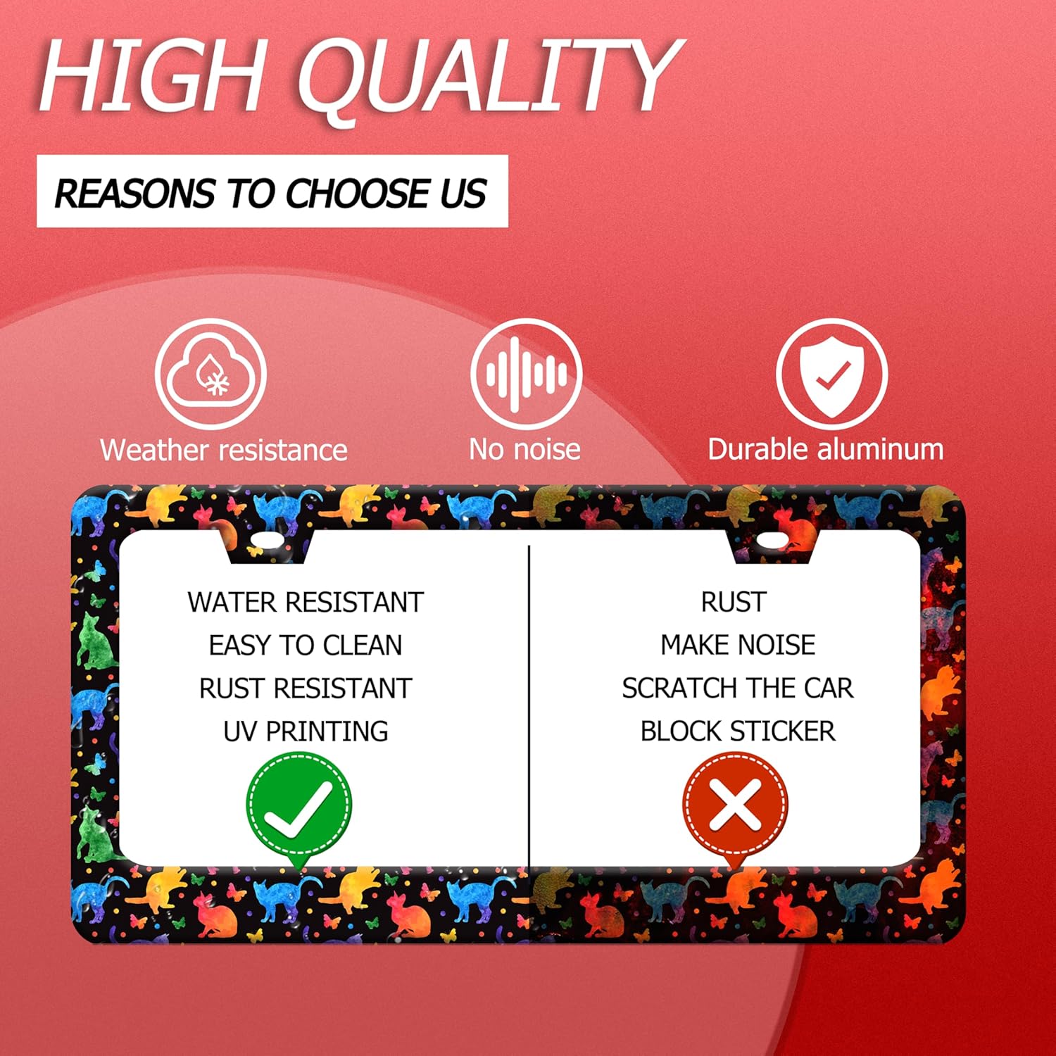 Colorful Cat License Plate Frame Cute Pet Butterfly License Plate Holder Funny Stainless Steel Accessories Cars Decor with 2 Holes and Screws Fits Standard Us Ca Vehicles 12.2 X 6 Inch