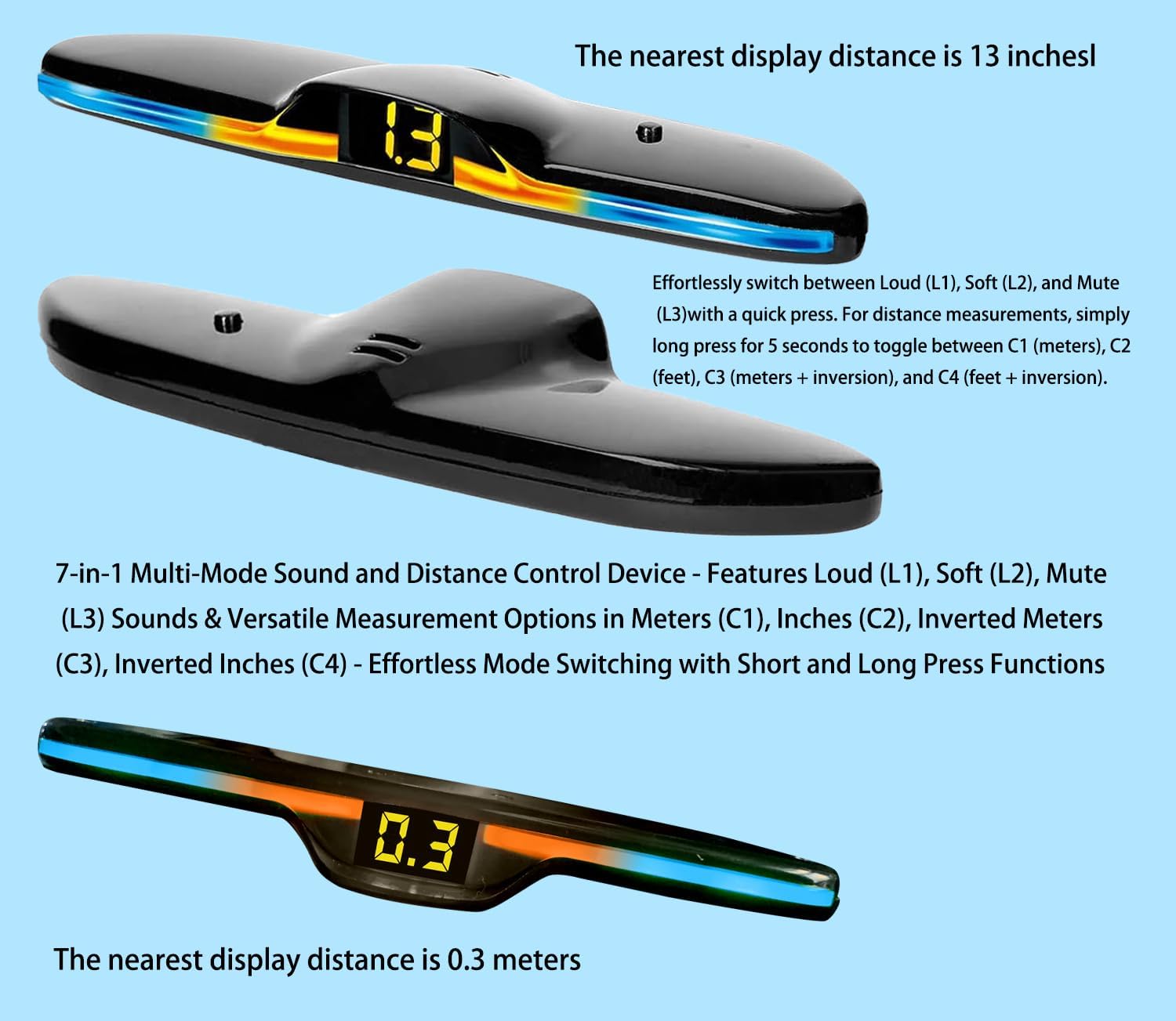 New Features Forward and Reverse Parking sensors, Option to Measure Distance in inches, bidirectional Display Option, and Customizable Digital Direction.
