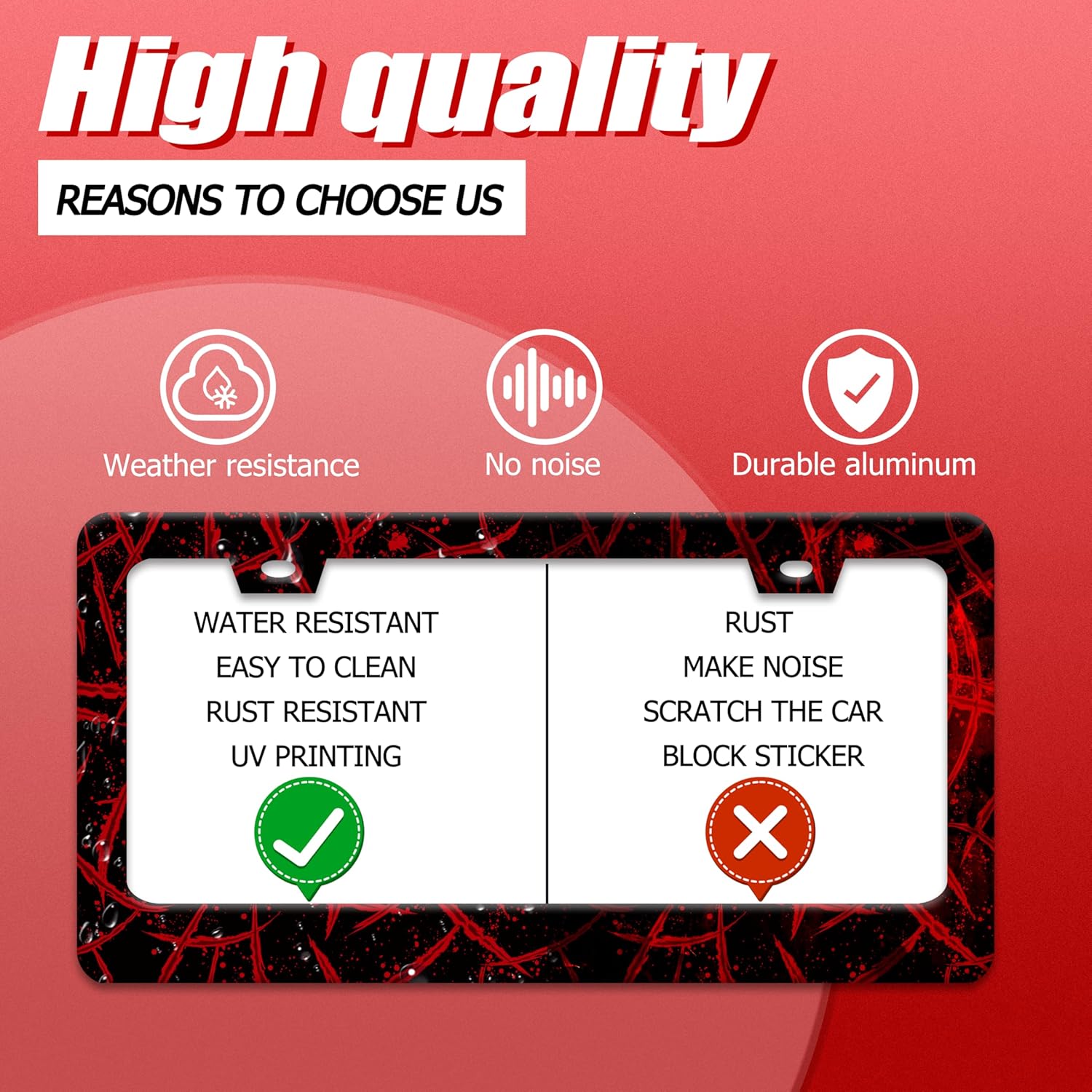 Blood Splattered License Plate Frame Funny Bloody Scar License Plate Frames for Car Decorative Parts Stainless Stee License Plate for Standard Us Canada License Plate Holder 12x6 Inch