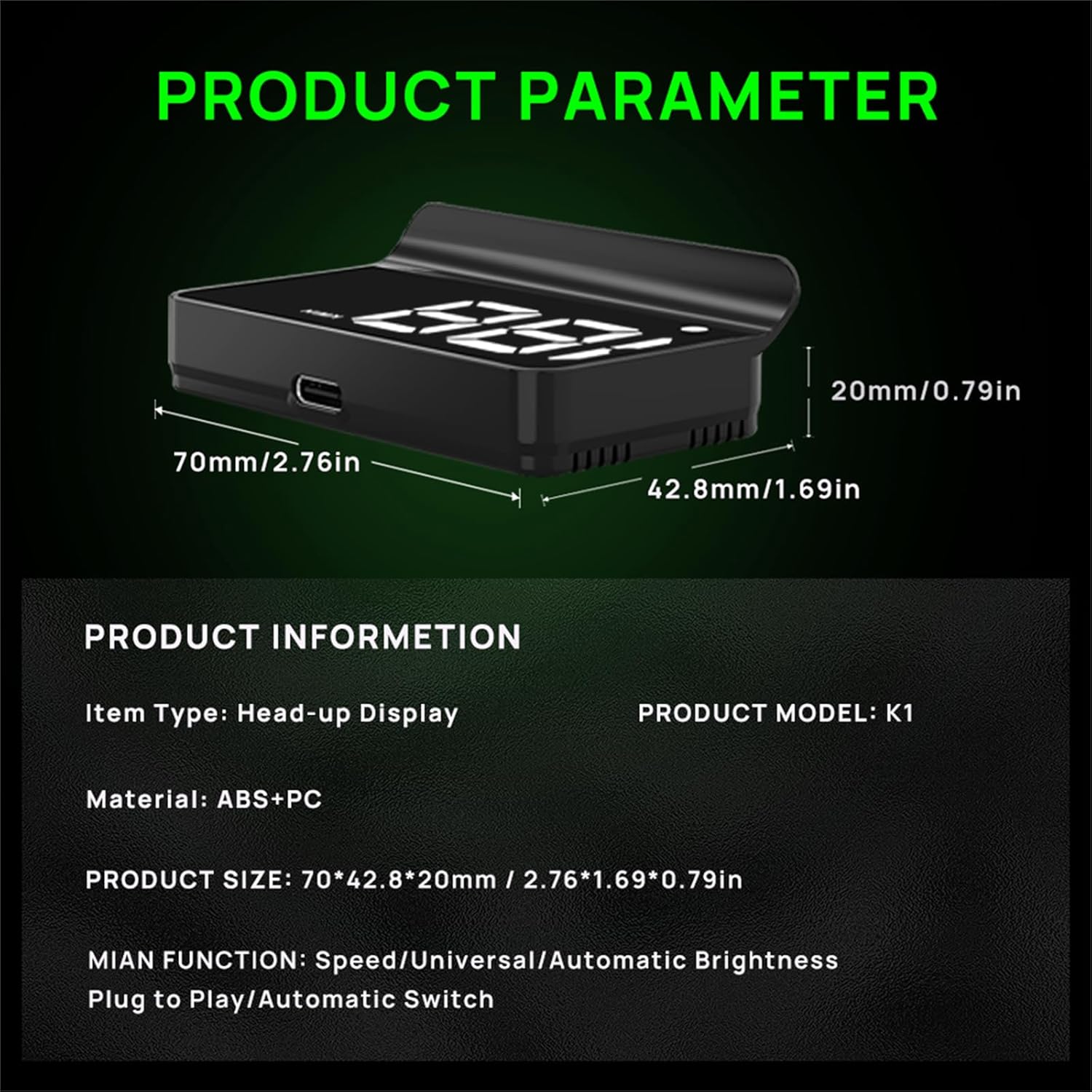 - Suitable for all Cars with USB Port: Designed with simplicity in mind, our HUD is easy to install and suitable for all cars with USB port, including cars, motorcycles, and trucks. Whether you drive a compact sedan or a large commercial vehicle, installation is effortless, allowing you to enjoy the convenience and safety benefits of our HUD