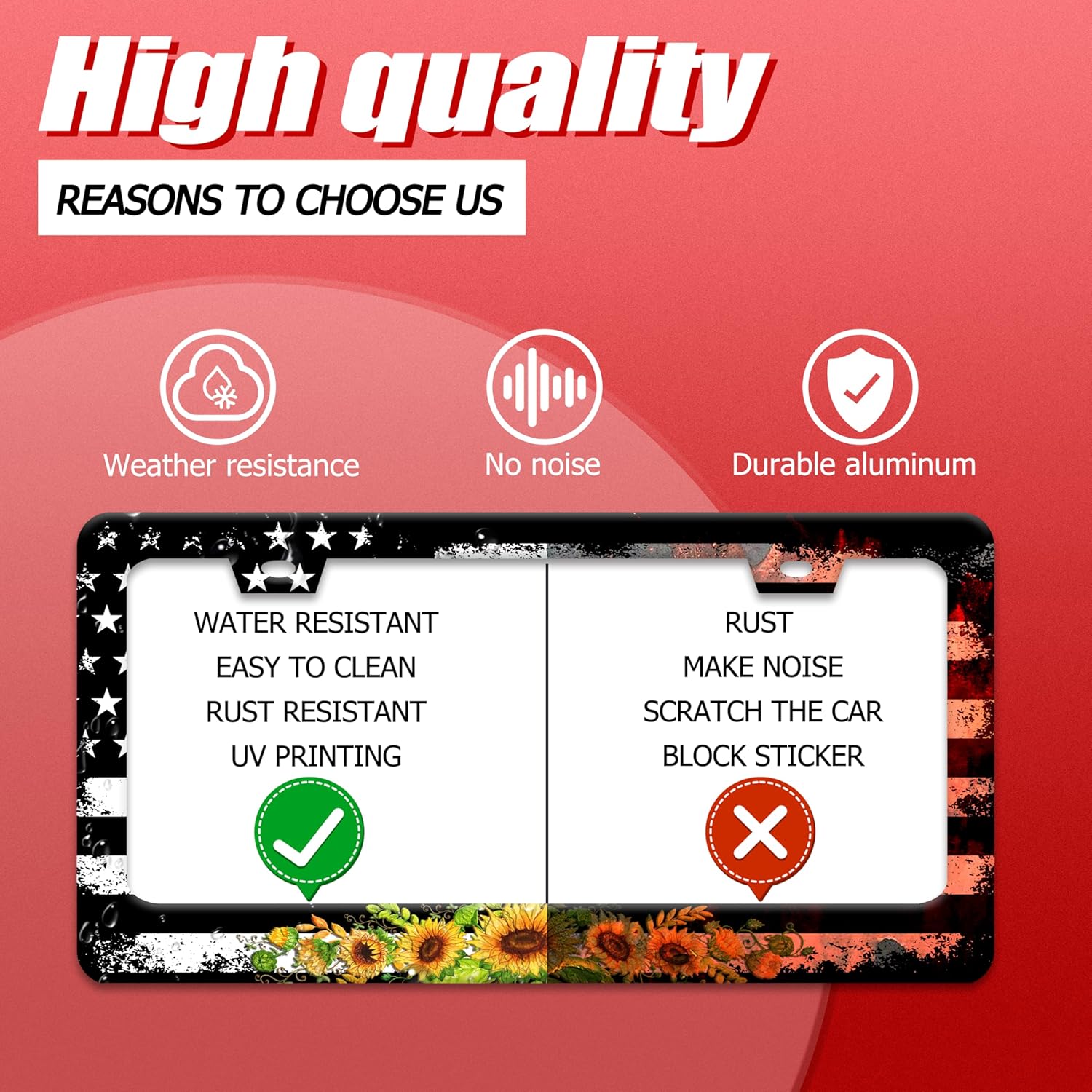 American Flag Sunflower License Plate Frame Patriotic Floral License Plate Frames for Car Decorative Parts Stainless Stee License Plate for Standard Us Canada Funny License Plate Holder 12x6 Inch