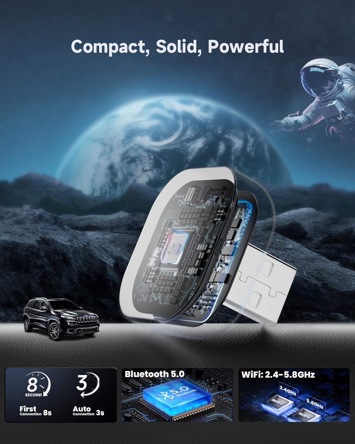 - Stable & Low-Latency Connection – Built with dual-channel WiFi and Bluetooth for fast and stable CarPlay performance—ensuring smooth navigation, music streaming, and voice assistant access during every drive