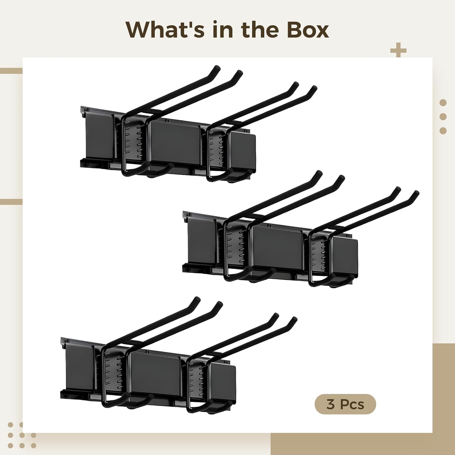 Heavy Duty Garage Organizer Tool Organizer Wall Mount, Iron Metal Hooks Set 6 Pcs, Black Adjustable Dual Hooks, Ideal for Saving Space, Supports 16 in Stud Spacing