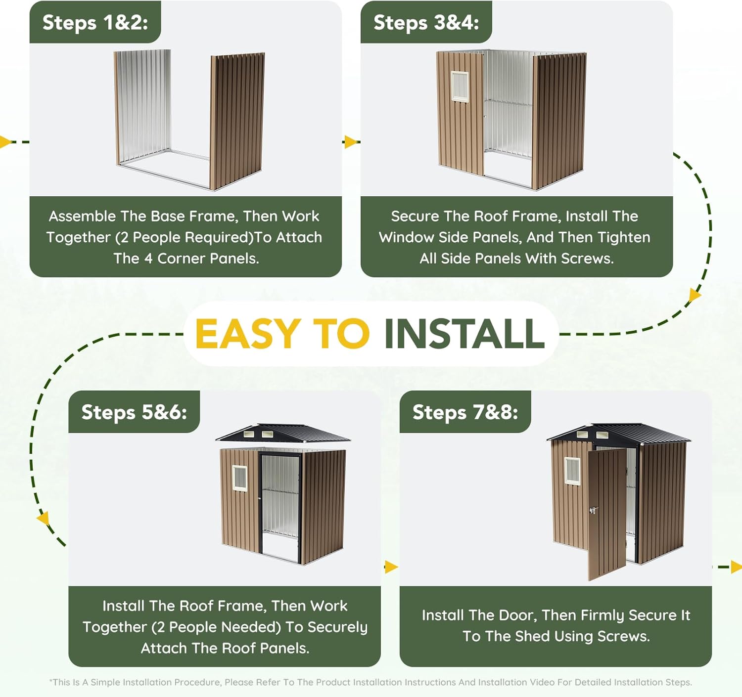 - Weather-Resistant Steel Construction: Made of high-quality galvanized steel, this shed is rust-proof, waterproof, and built to withstand various weather conditions for long-term durability.