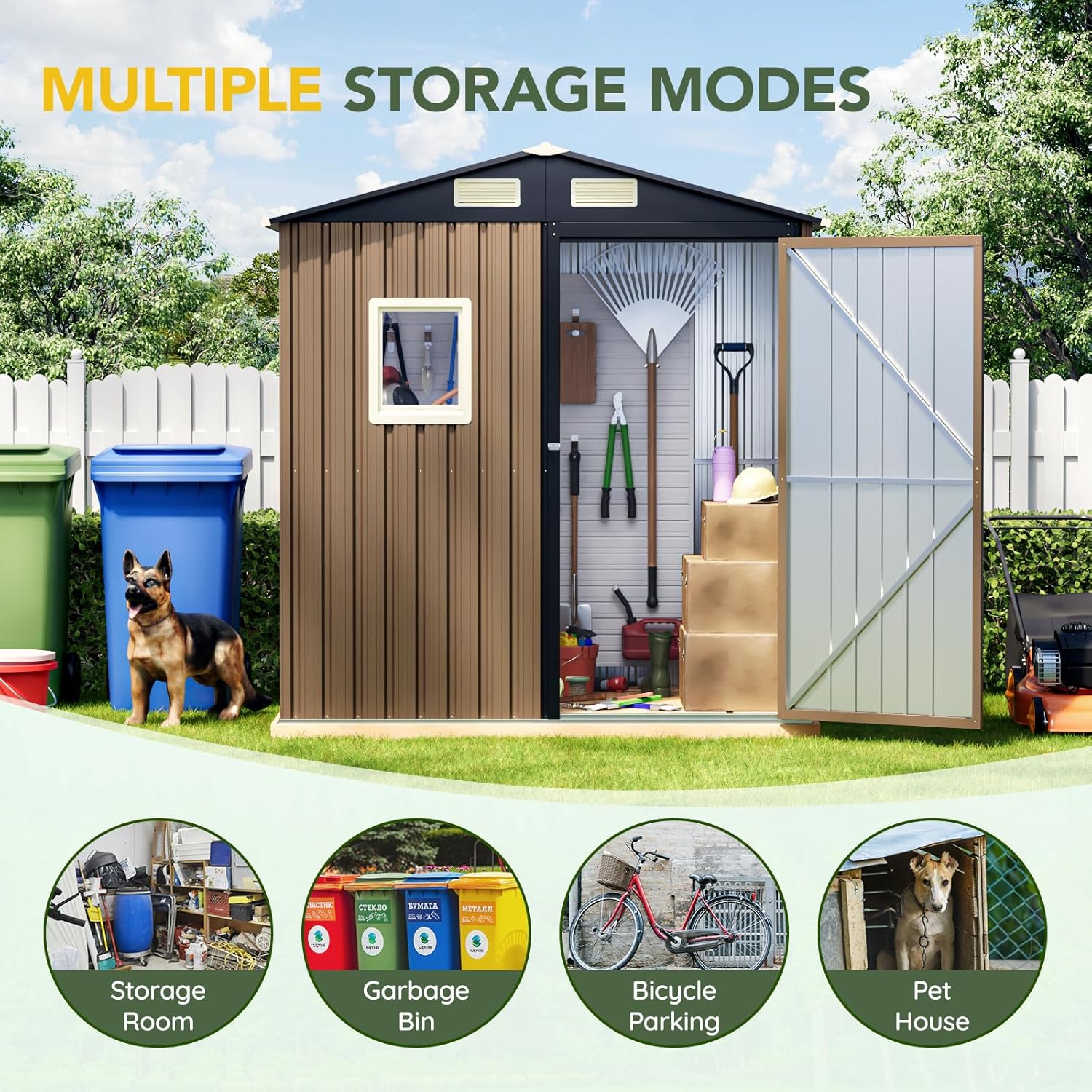 - Transparent Window for Natural Light: Includes a clear window to allow natural light into the shed, making it easier to locate items without the need for additional lighting.