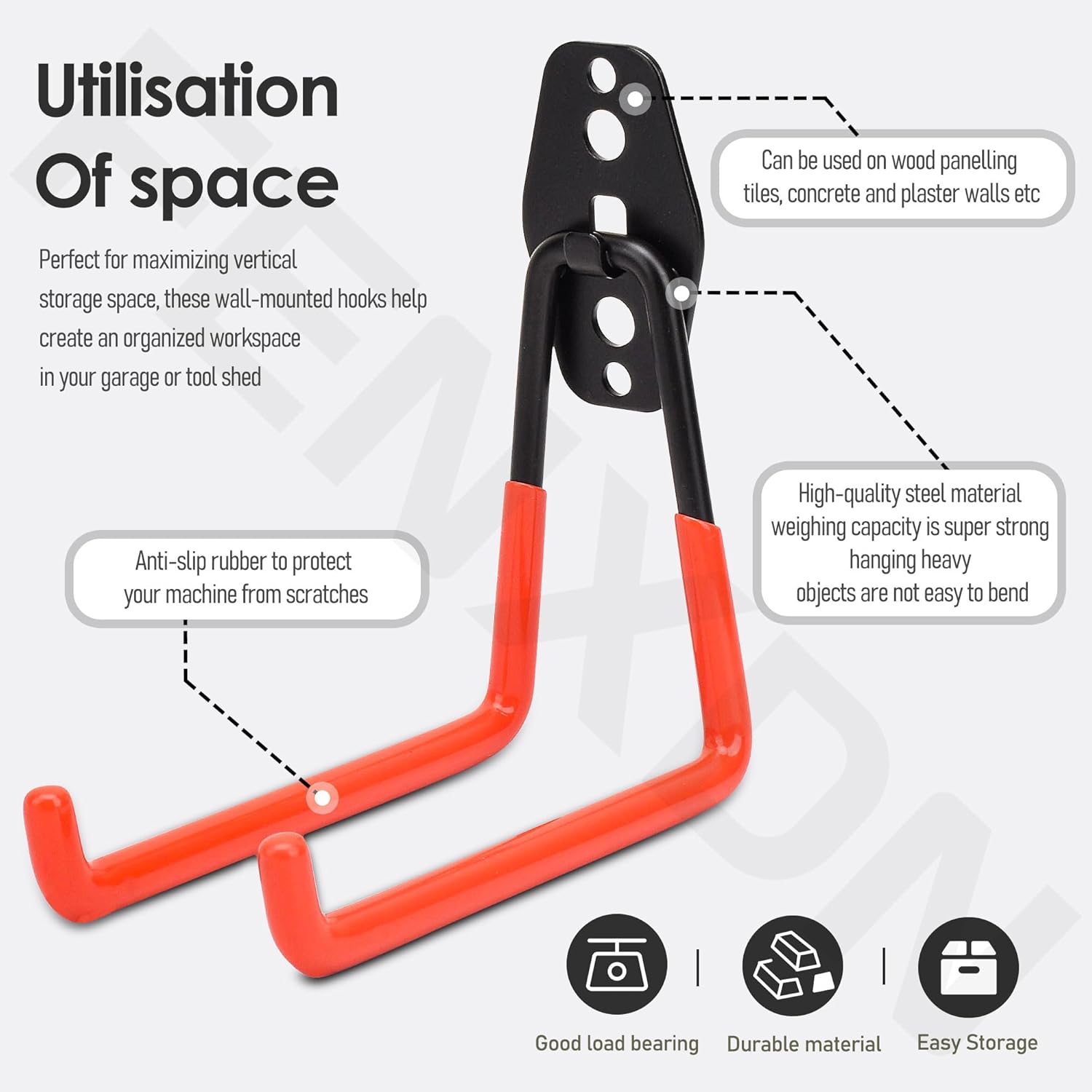 - HEAVY-DUTY CONSTRUCTION: Robust steel hooks capable of securely holding power tools and equipment for reliable garage organization