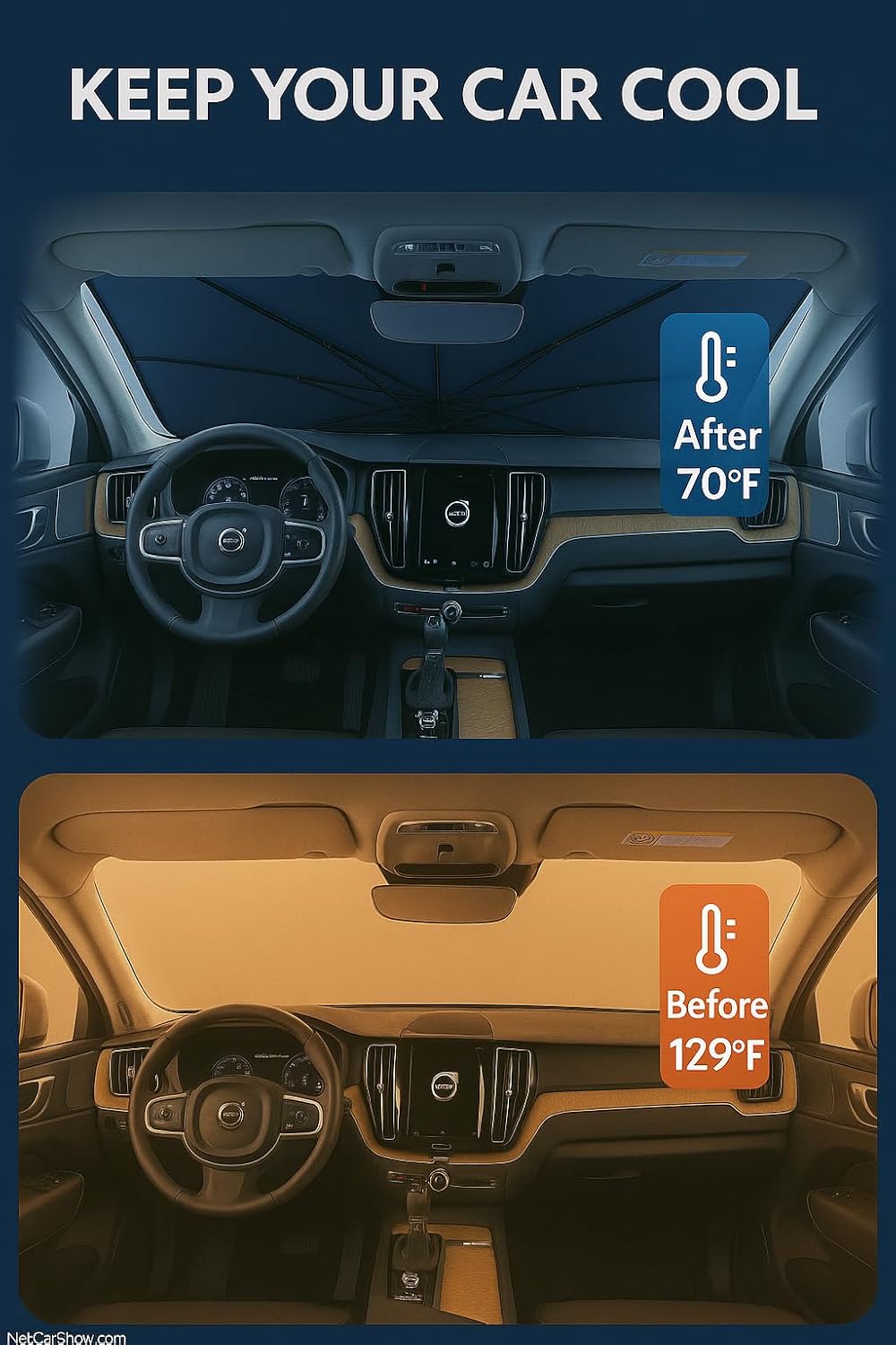 - Certified Sustainable. Customized Windshield Sunshade: Specially designed for the 2016-2025 Volvo XC90 with precise mirror cutouts, providing 100% shading, carbon fiber handle, ensuring lightweight and durability while also having a fashionable feel. Our XC90 windshield sunshade can protect the interior of your car from various light damage and prevent dashboard and seat degradation.