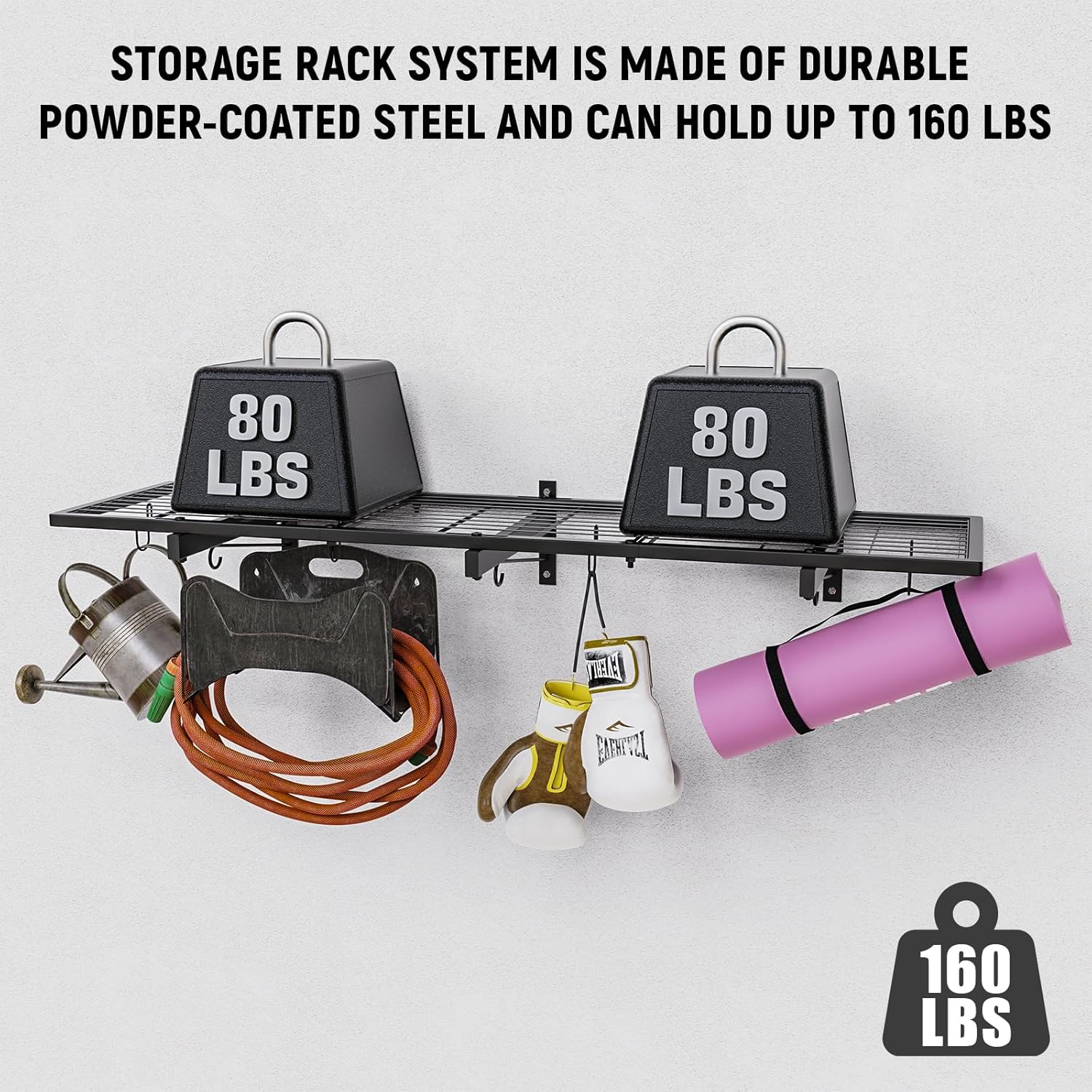 - STURDY CONSTRUCTION: Made from heavy-duty metal, this wall-mounted garage shelving can hold up to 160 lbs, providing reliable storage for tools, supplies, and equipment. Ideal for both residential and commercial use, these floating shelves are built to last and support heavy loads.