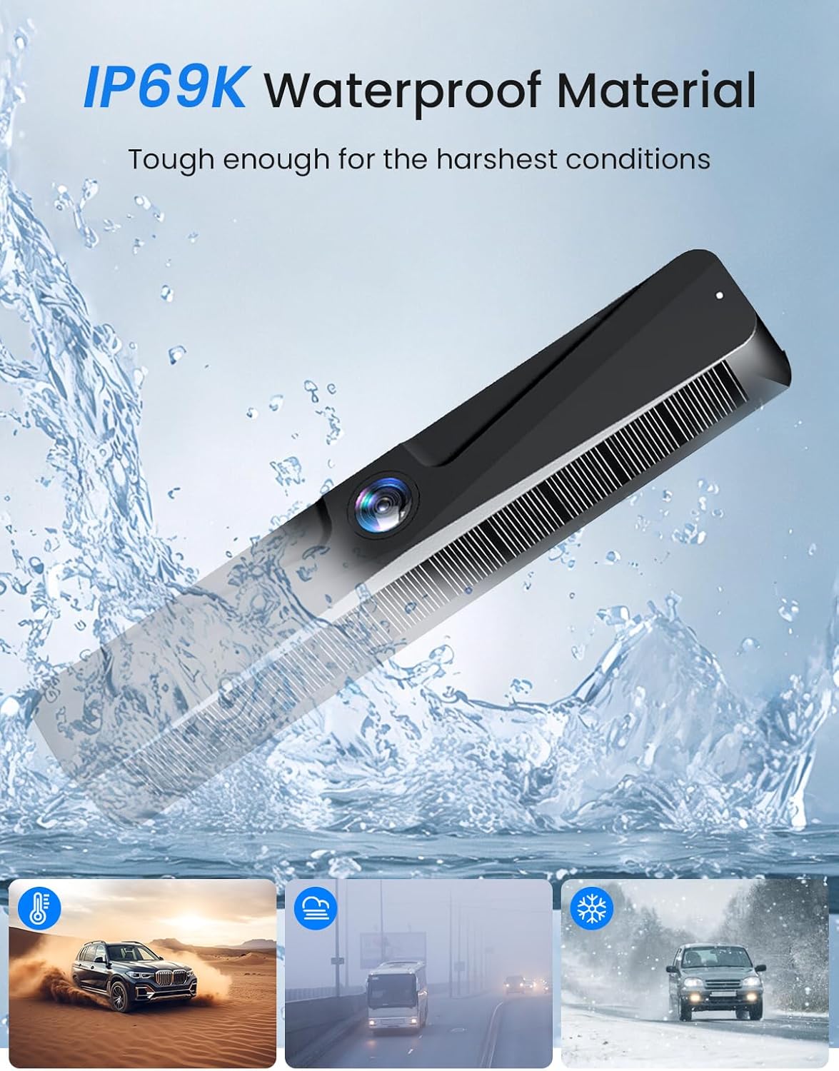 - IP69K Waterproof – Ready for Any Weather: Engineered for durability, this rear view camera boasts an IP69K rating — the highest level of waterproof protection. Rain, snow, heat, or car washes — it performs flawlessly in any condition without fog or image distortion.