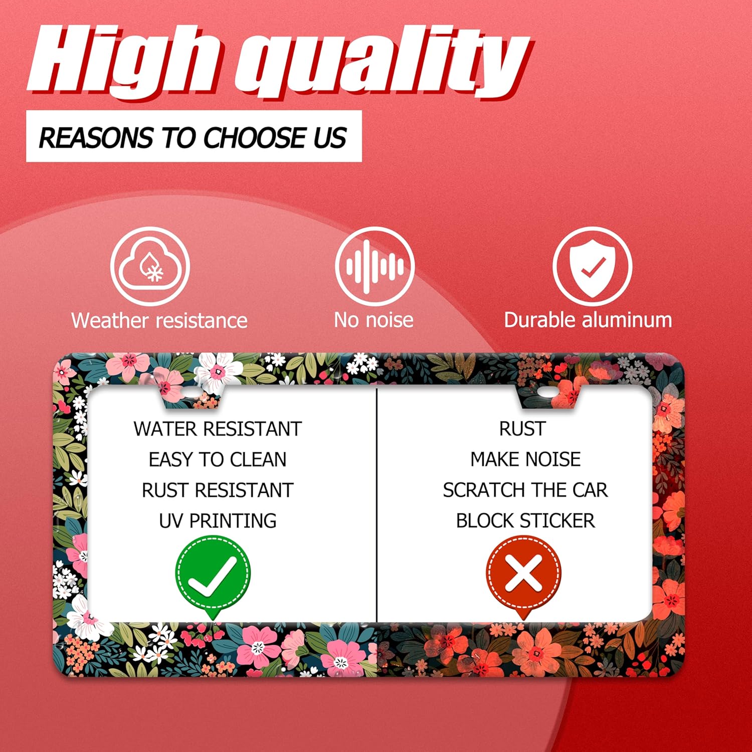 Folk Art Flowers License Plate Frame Beautiful Floral License Plate Holder Funny Personalise Car Stainless Stee Decorative Parts for Standard Us Canada Vehicles 12x6 Inch for Women Men