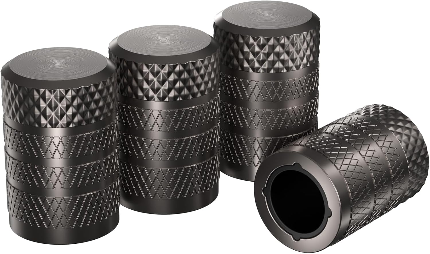 CKAuto Tire Valve Stem Caps, Grey, 4 pcs/Pack, Anodized Aluminum Tire Valve Cap Set, Corrosion Resistant, Universal Stem Covers for Cars Trucks Motorcycles SUVs and Bikes