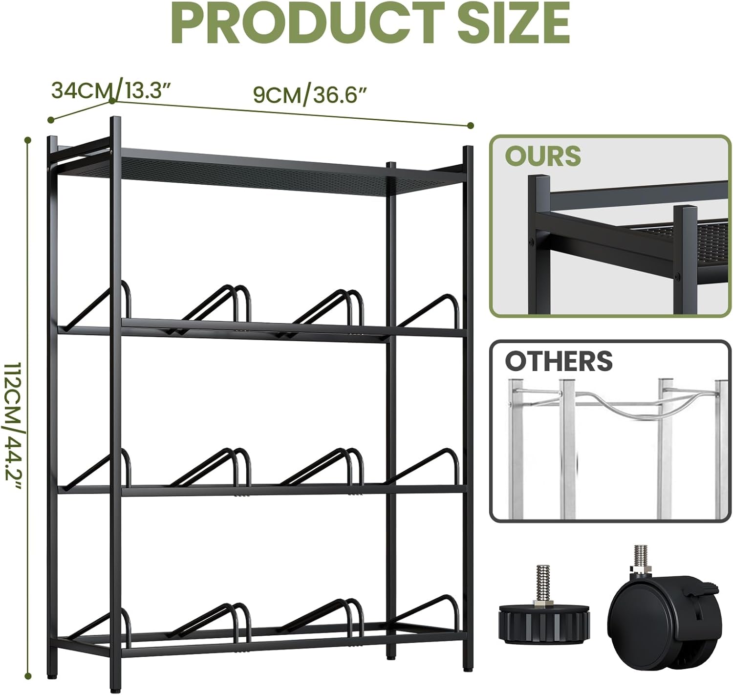 - 【Easy to Assemble】Unlike other bottle racks with more components, our water jug holder boasts easy assembly with fewer parts and a stable structure. 2 brake wheels, 2 swivel wheels. You can have it fully assembled in under 10 minutes.