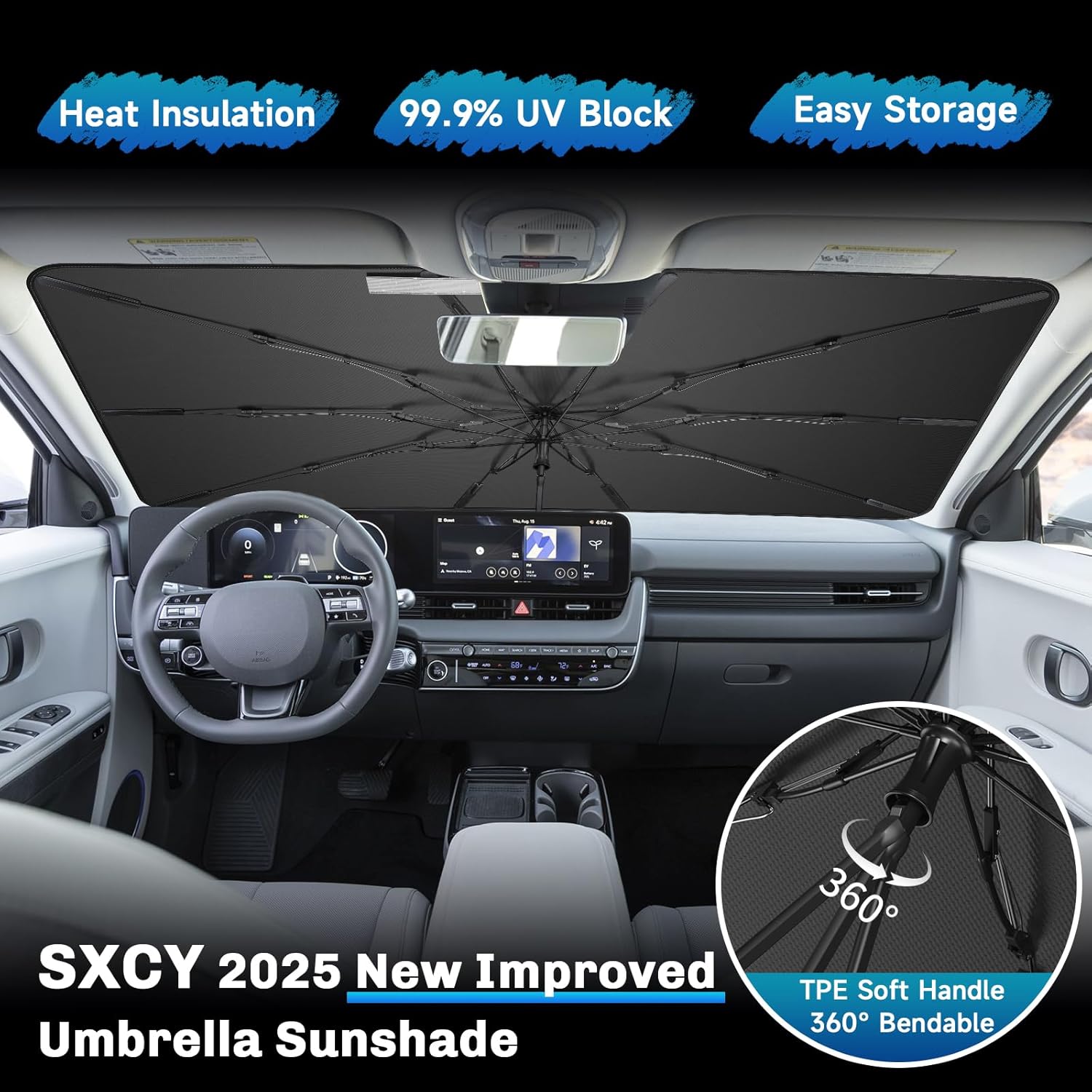 - 4. Practical & Scratch-Free: This 2025 Ioniq 5 Sunshade Umbrella comes with a silicone sleeve to safeguard your dashboard and a flexible TPE handle for scratch-free installation. A must-have for keeping your 2025 Ioniq 5 cool and UV-protected every day