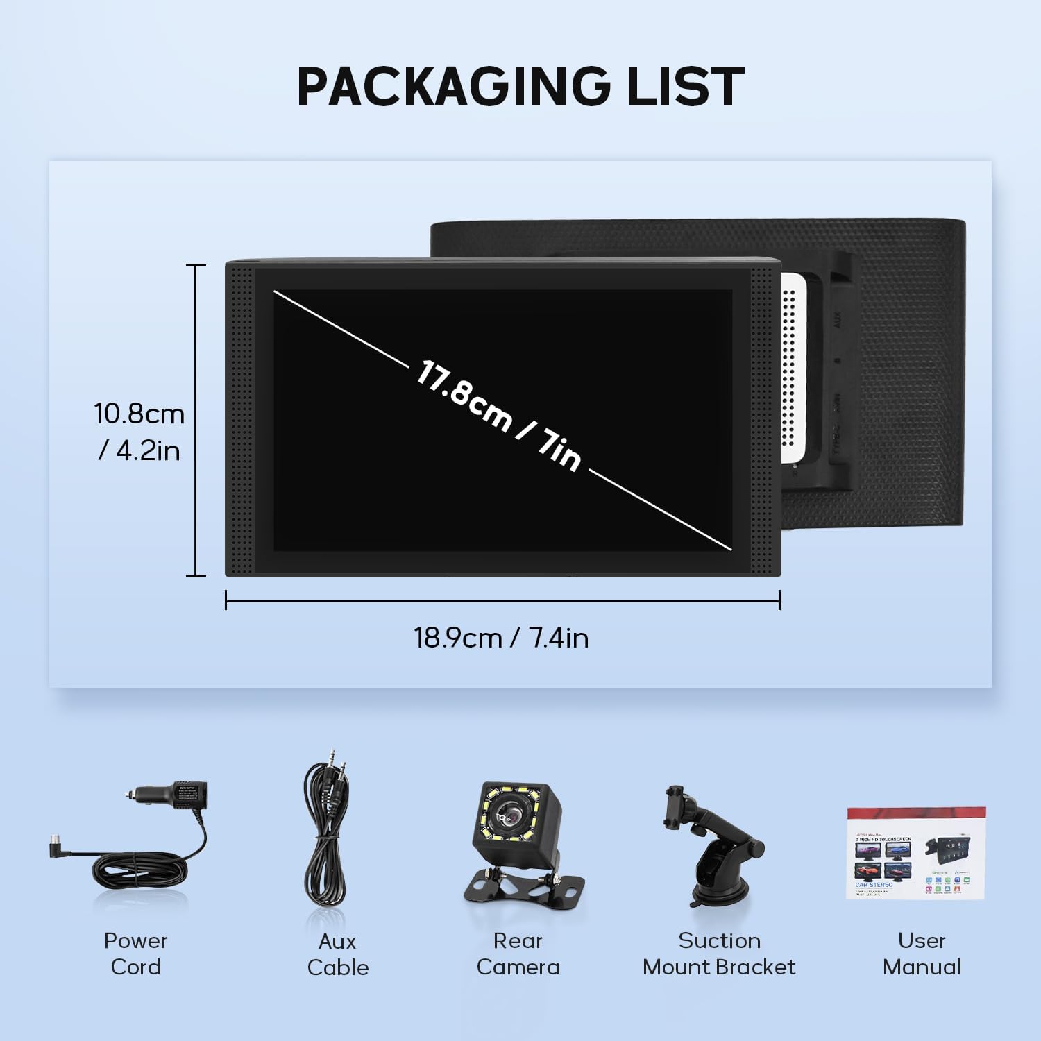 Wireless Apple Carplay Screen for Car Android Auto, 7" HD Touch Screen Car Stereo with Mirror Link, Bluetooth 5.2, Backup Camera, AUX,FM Transmitter for All Vehicle