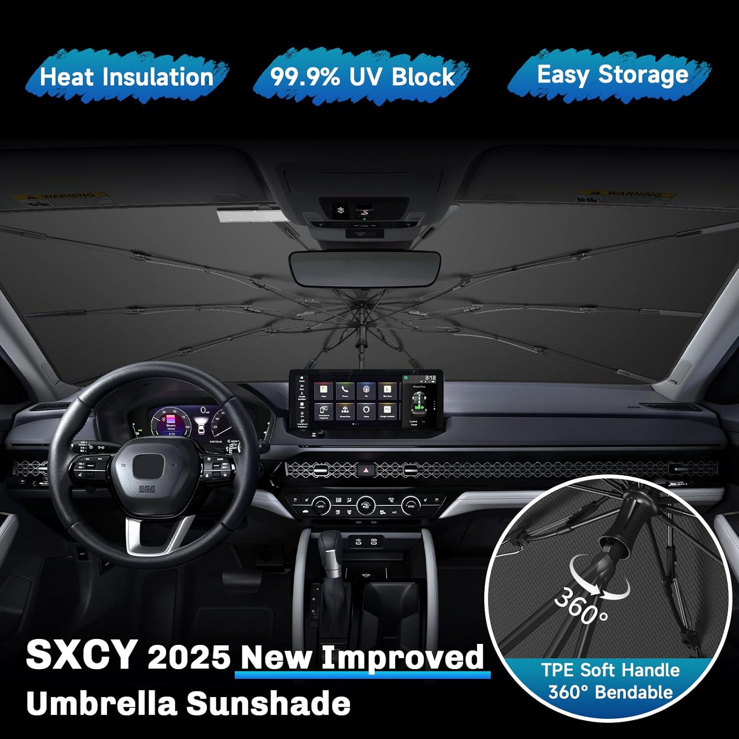 - 2. Innovative Design for Easier Installation: 2024 2025 Defender Umbrella Sun Shade features a 360° flexible TPE handle, enlarged fabric for adjustable coverage, 10 Spring Ribs for instant open/close. Stores easily like an "umbrella". Effortless for daily use
