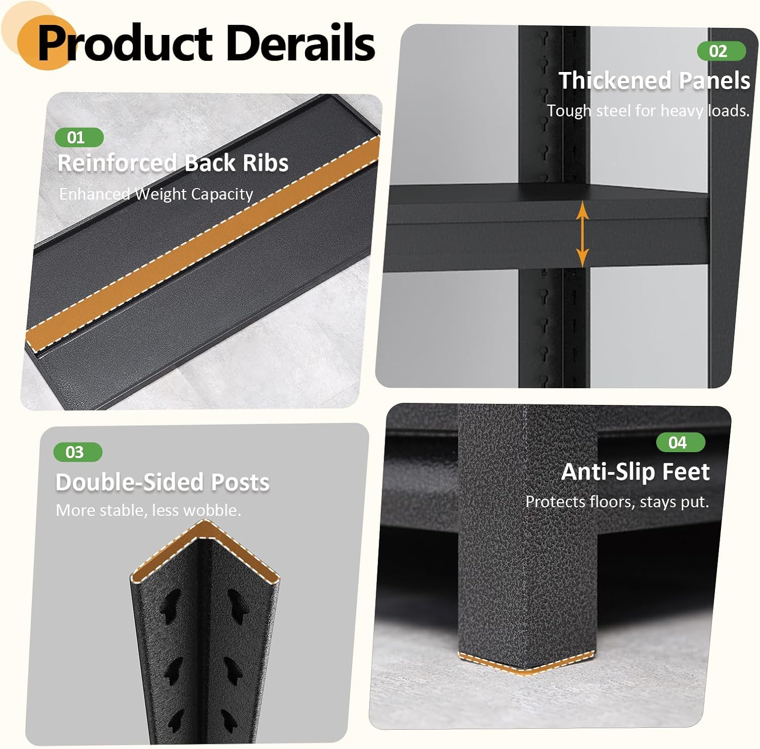 - 【Reinforced for Stability – Stronger from the Core】 Thicker shelves, double-sided support posts, and rear stiffening ribs ensure a rock-solid structure. Built to stay stable and safe under heavy loads—no wobbling, no worries.