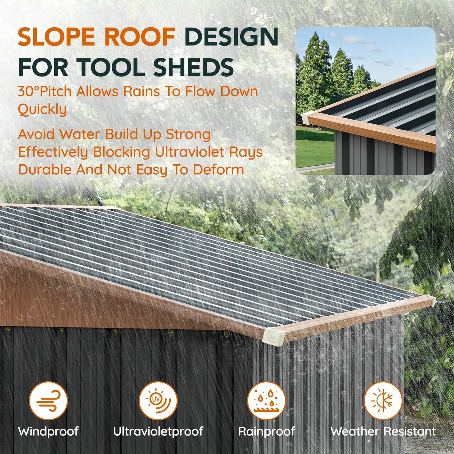 - 【Heavy-Duty Steel Storage Shed】 Verdeluxe spacious outdoor shed measuring 56.1"Lx30.5"Wx73.1"H,Roof Dimensions:60.6"Lx 35.7"W,5*3FT The tool shed is crafted from galvanized steel construction with anti-corrosion coating,Unbreakable by Sun,Unstoppable by rain,All-Season Durability.Our metal storage shed blends industrial durability with modern aesthetics,featuring clean lines,a subtle galvanized texture,and neutral color options-timeless MatteGray-that complement any outdoor aesthetic.