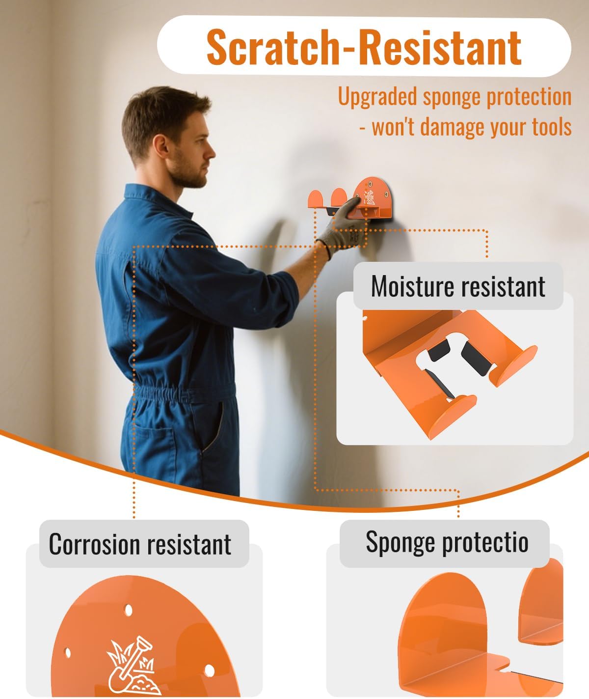 - đ„ăHeavy-Duty Wall Rack â Alloy Steel Garden Tool OrganizerăBuilt with 3mm thickened alloy steel, this garage organizer delivers 30% higher load capacity (180LB) than standard racks. The rust-proof powder coating ensures durability in humid garages/sheds, while the orange-painted finish adds visibility and extra anti-corrosion protection.Thick sponge liners protect chainsaw surfaces from metal scratches.