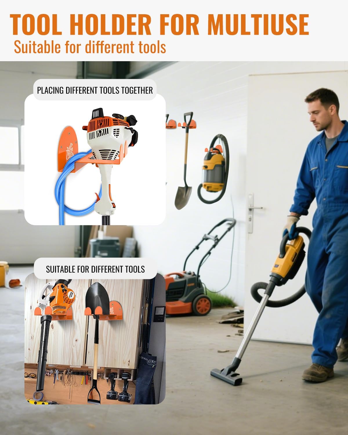 - đăUniversal Fit for Multiple ToolsăHolds string trimmers, drills, shovels, rakes, bikes, and more! The adjustable hook gap (1.4ââ2â) accommodates thick handles without scratching. Mount horizontally/vertically in garages, workshops, or garden sheds.