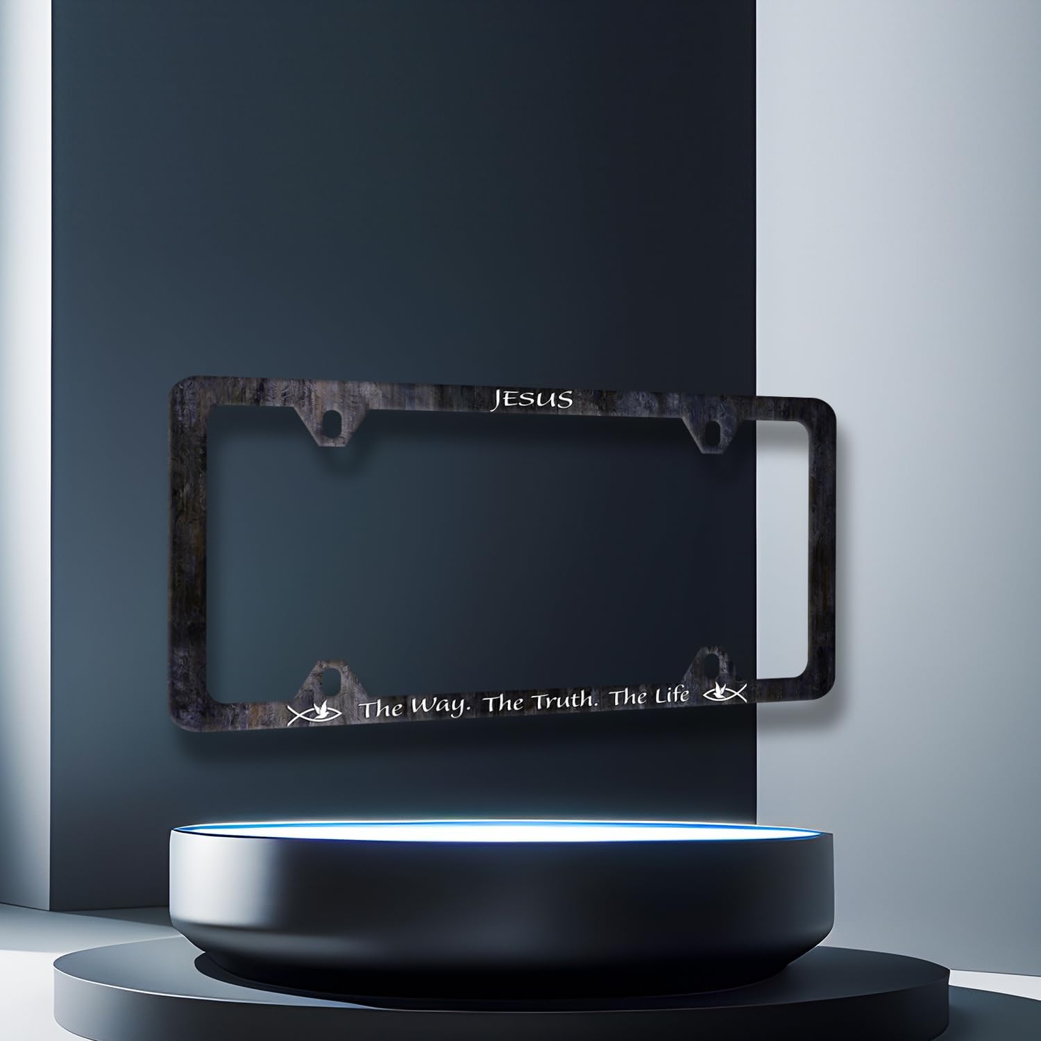 Jesus The Way The Truth The Life License Plate Frame Christian License Plate Holder Stainless Steel Funny Design Compatible with Standard License Plate for USA Canada 12.3" x 6.3"