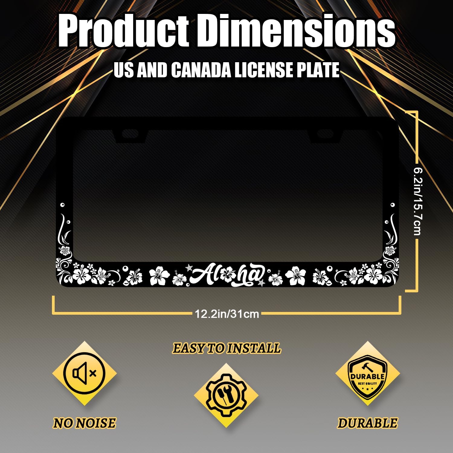 Aloha License Plate Frame Hibiscus Flowers License Plate Holder Stainless Steel Funny Design with 2 Holes and Screws 12.3" x 6.3"