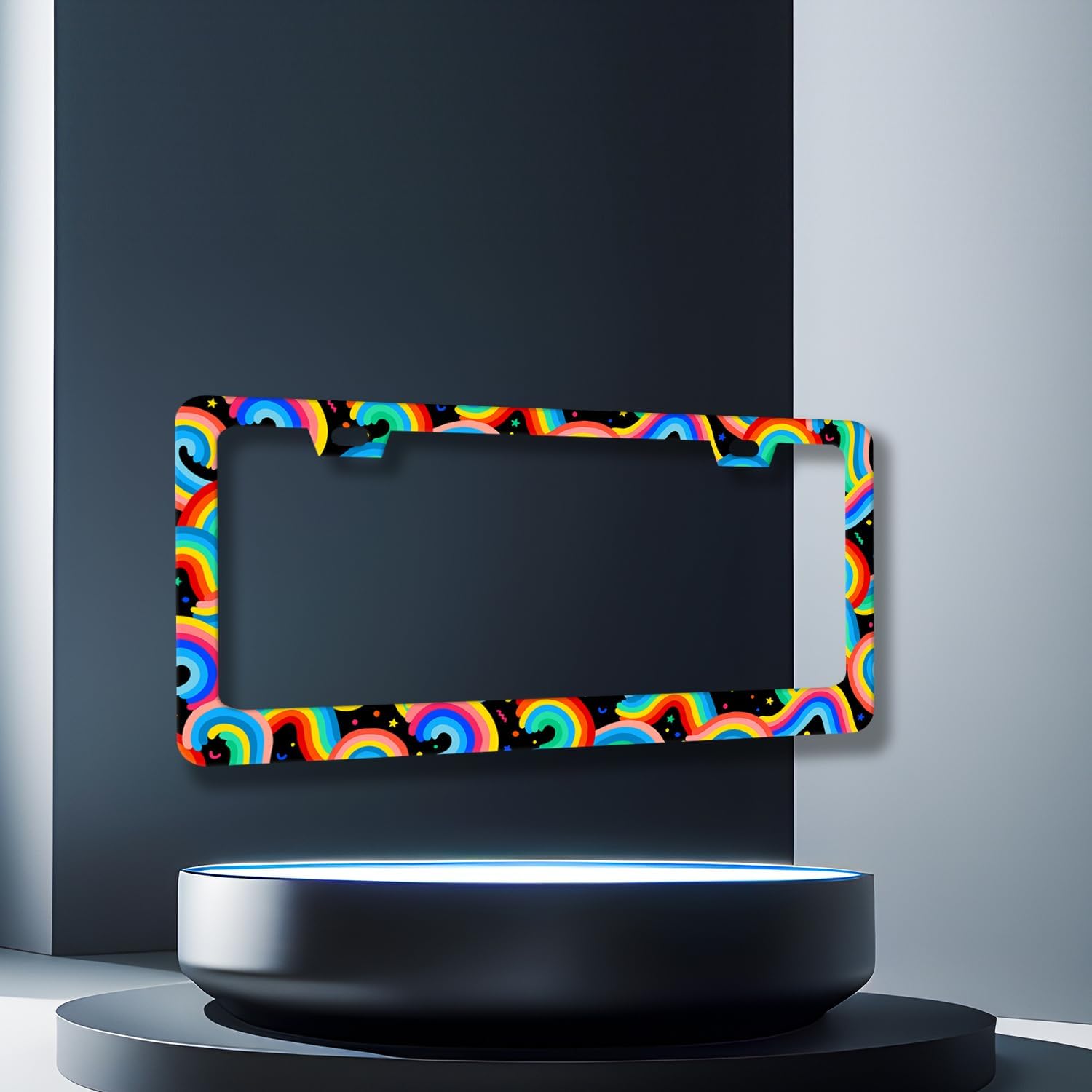Boho Rainbow License Plate Frame Colorful License Plate Holder Stainless Steel Funny Colorful Car Accessories Decoration 6.3" X 12.3" with 2 Holes Screws