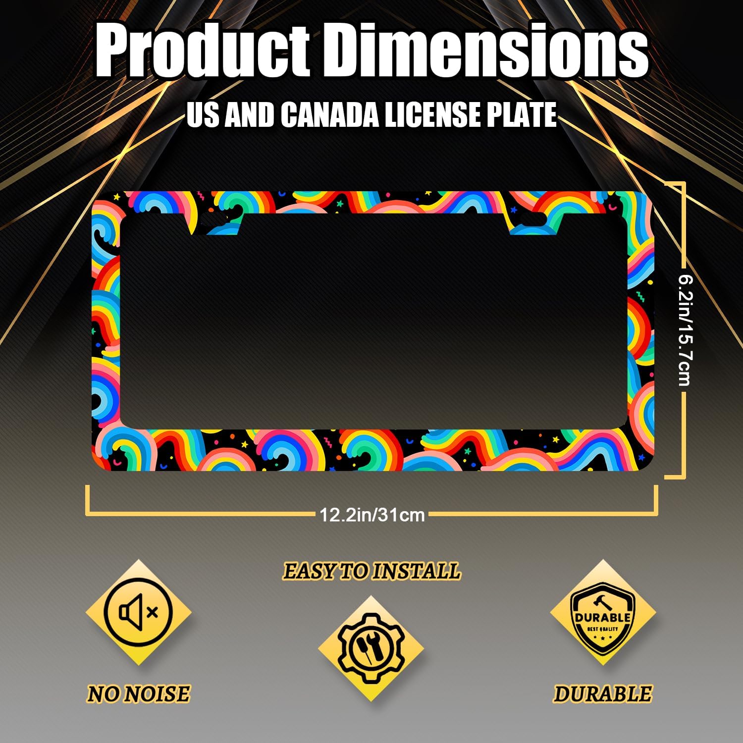 - Size: The size of the license plate frame is 12.3" x 6.3" , it fits all standard size US and Canada vehicle license plates.Fashion design frame fits perfectly on your car license plate.