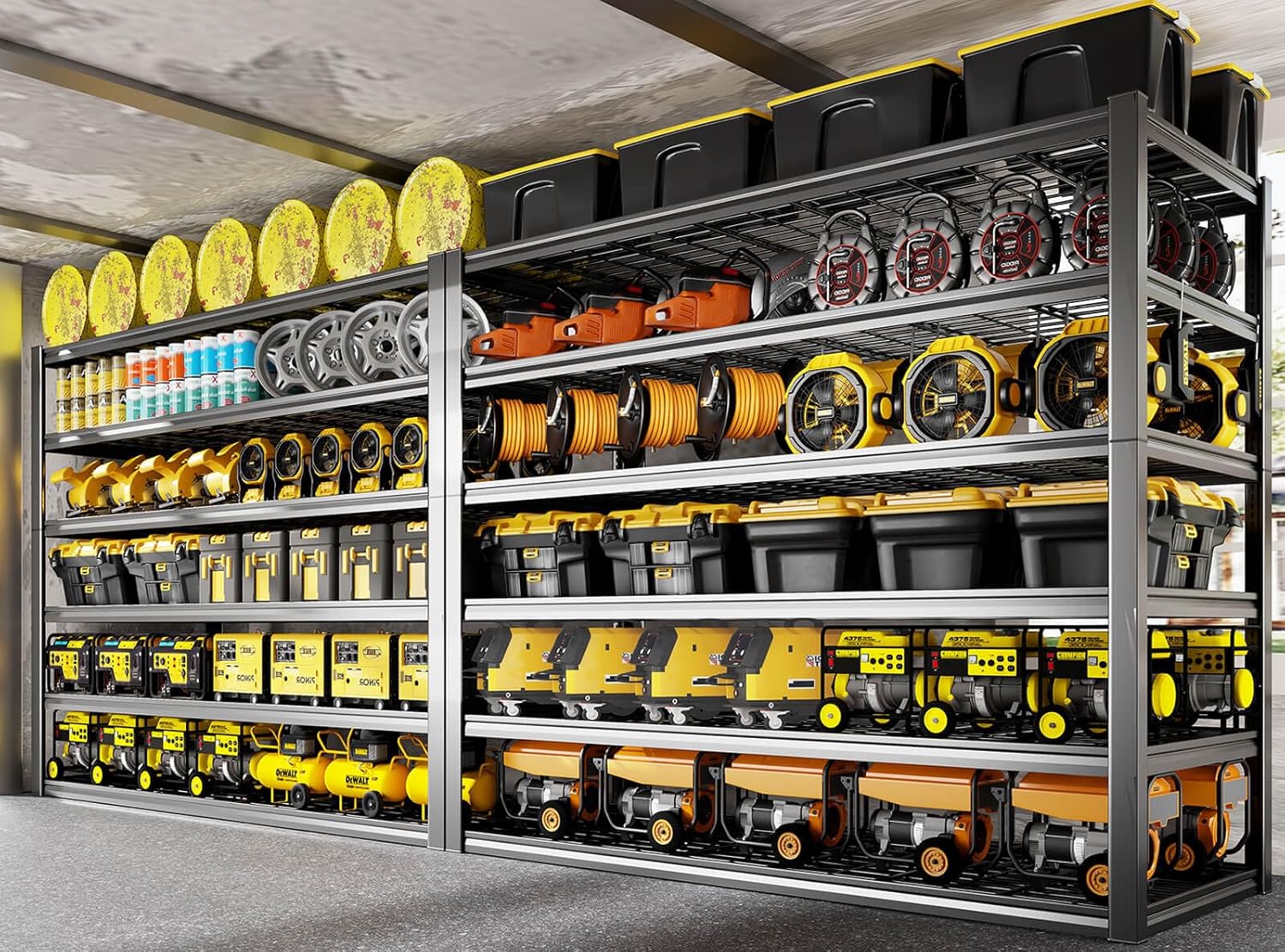 - 【6 Tier 50 "W x 84"H x 24"D Wide Storage Shelves heavy duty】Large heavy duty garage shelving is suitable for garage, warehouse, basement,Library, commerical, industrial etc. The 6 tier metal shelves for storage shelves expands your storage space, makes your home clean .