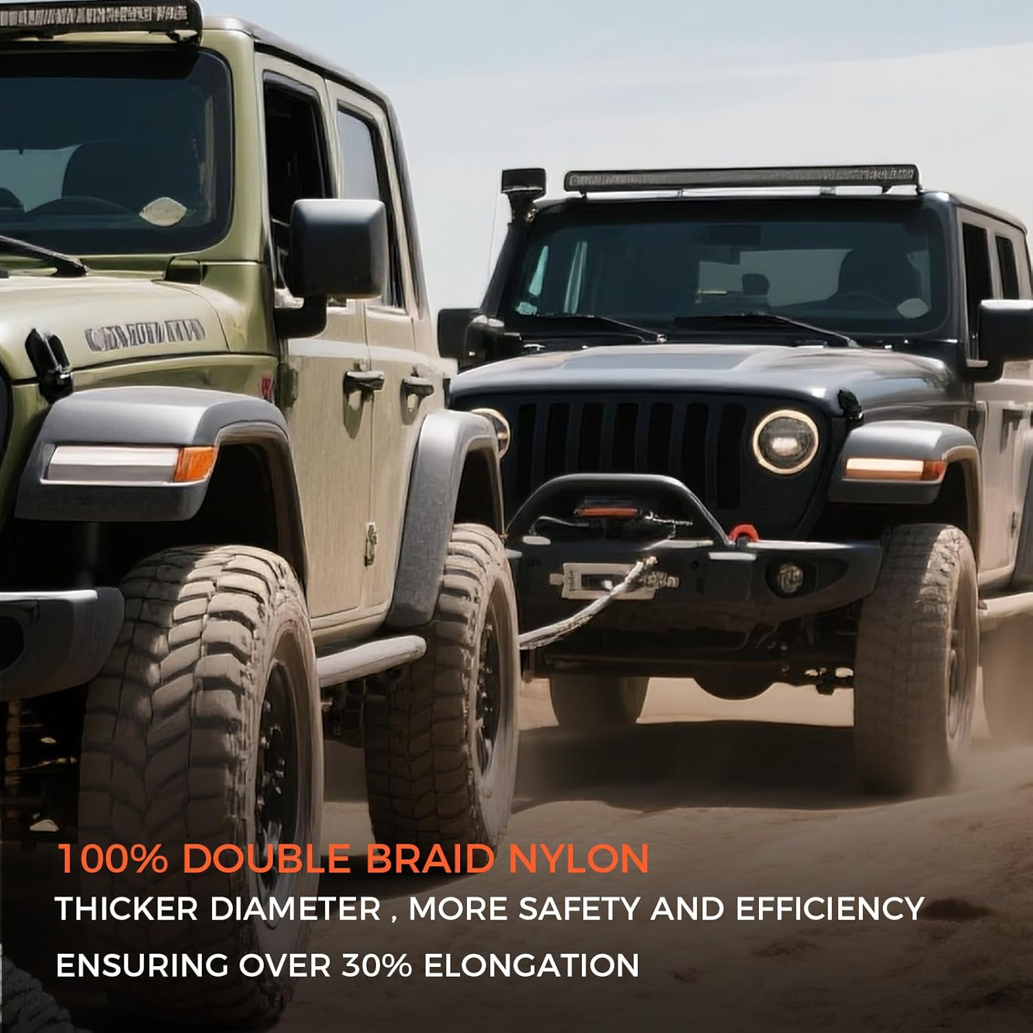 - MULTIPLE VEHICLES APPLICABLE: The kinetic energy recovery tow rope is suitable for almost all vehicles, generally suitable for towing all kinds of vehicles, such as cars, jeeps, SUVs, UTVs, ATVs, and trucks, it is the best helper for your traveling and exploring.