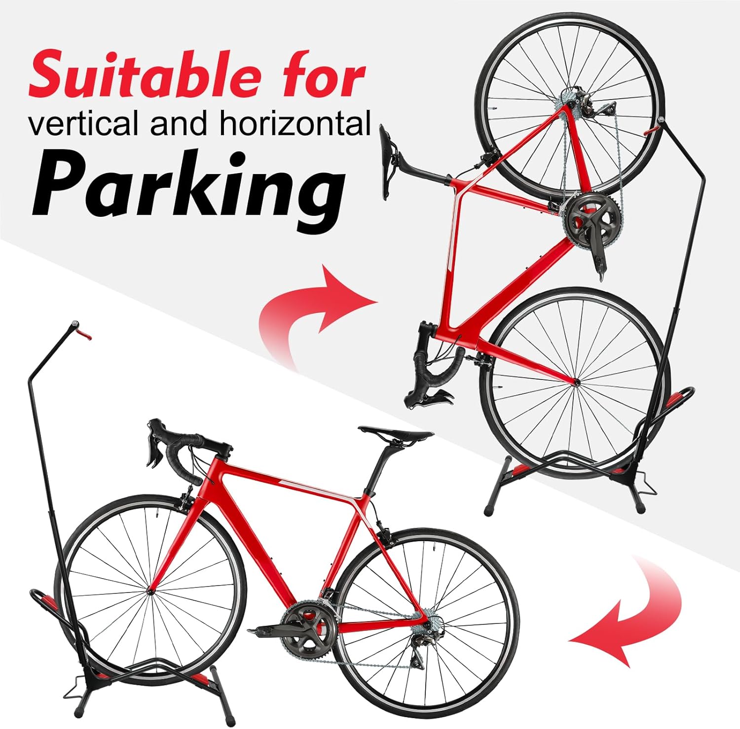- Space-Efficient Dual Storage:This vertical bicycle stand saves 4 sq.ft of floor space with vertical or horizontal positioning. Designed for compact spaces like apartments, dorms, and garages, the vertical floor bike rack securely holds bikes without blocking pathways. Compatible with most 20"-29" bikes for flexible indoor/outdoor storage