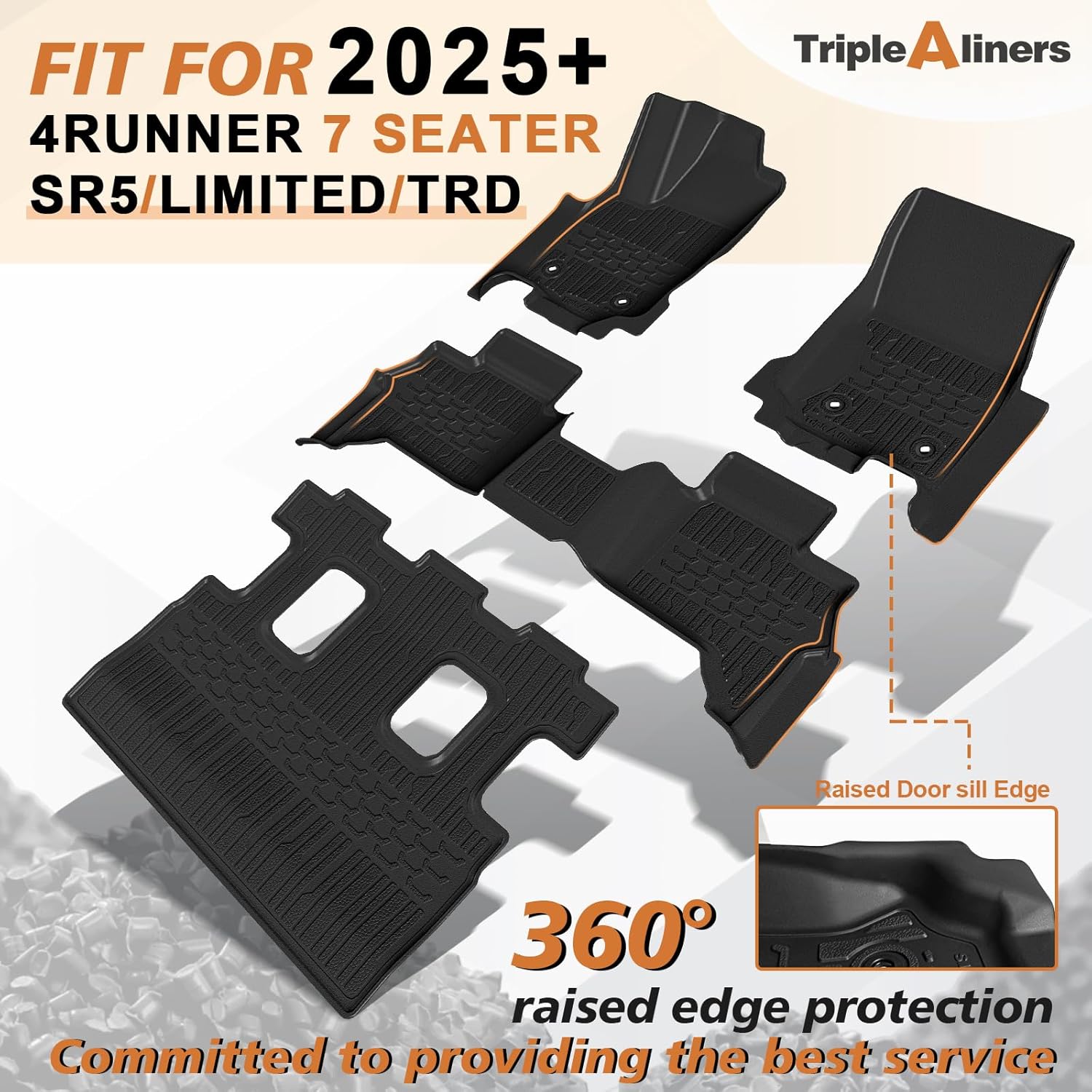 TripleAliners Floor Mats All Weather Liners Compatible with Toyota 2025 4Runner Accessories Custom Fit TPE Heavy-Duty 1st & 2nd & 3rd Row Waterproof Anti-Slip Floor Liners (7 Seats ONLY)