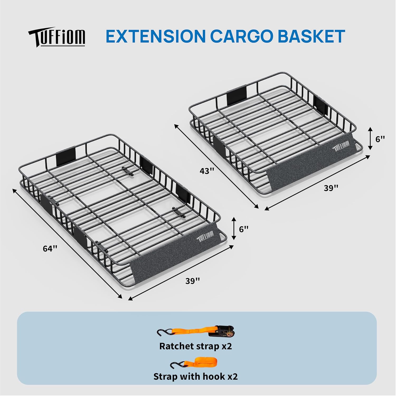 - 【Expandable and Upgradeable Accessories】 The length can be freely adjusted: 64×39×6 inches or 43×39×6 inches, which can perfectly fit items of different sizes. Equipped with a pair of hook straps and a pair of ratchet straps, it can flexibly fix items of different shapes to prevent items from shifting or being damaged during driving.