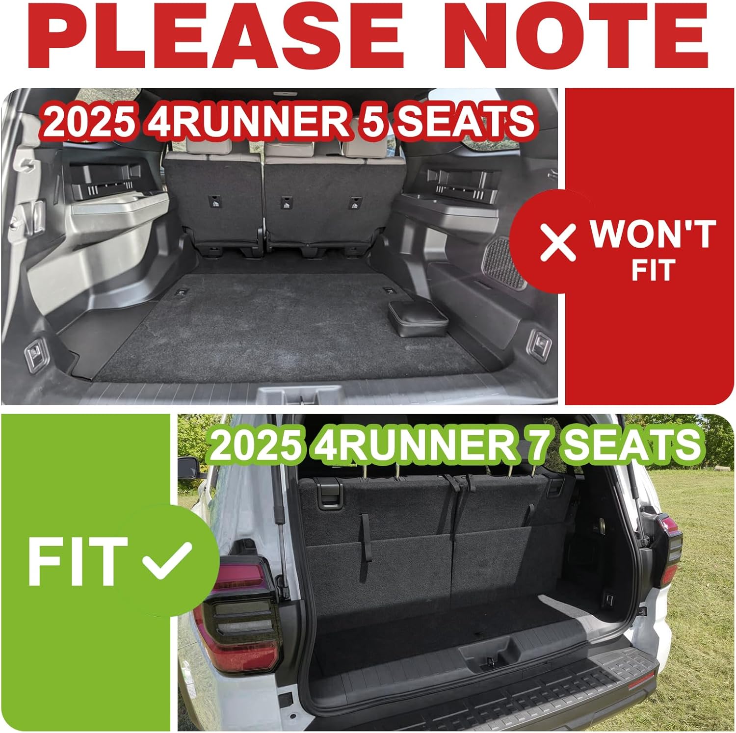 - Perfect Fitment: Custom-fit design based on 3D laser scan data to ensure a perfect flush contour and full coverage for your 2025 Toyota 4Runner perfectly. [Package includes 1*Floor Mats Set, 1*Trunk Mat, 1* Rear Seatback Cover]