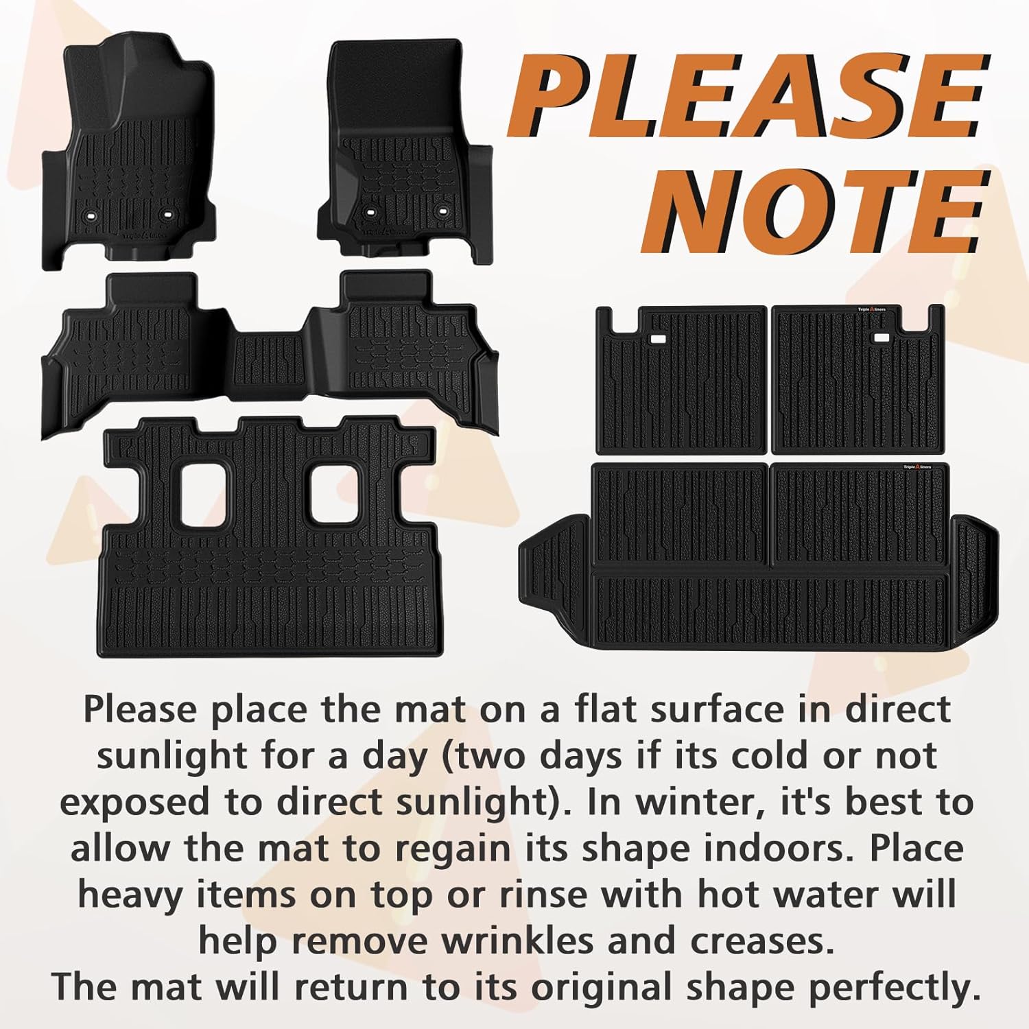 - Function & Why Us: Protect your car with full coverage, keeping a clean look and OEM style. 3D texture and anti-slip surface design ensure a flush fit and perfect stability. TripleAliner's mats feature reinforced edges for long-lasting performance