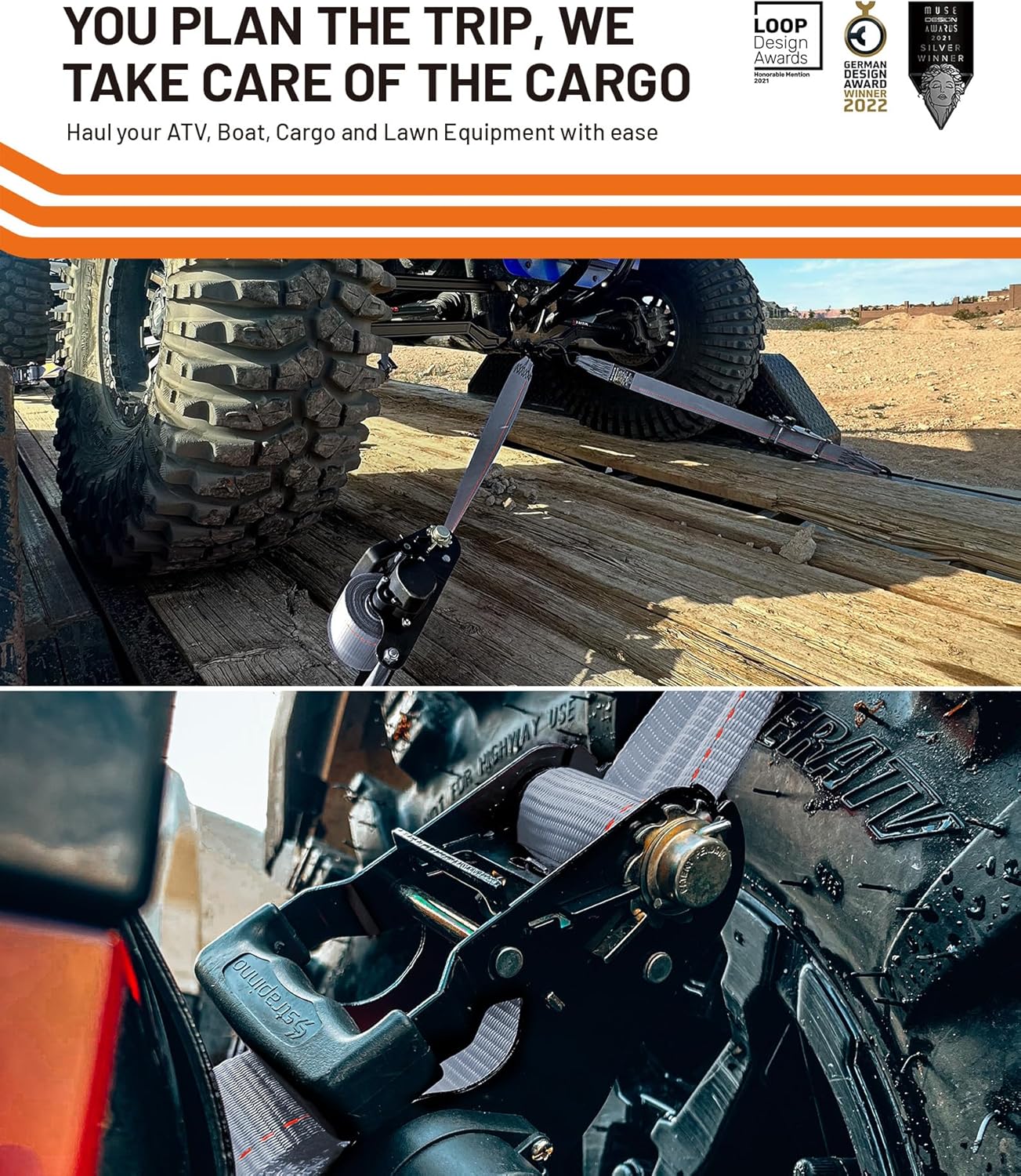 Strapinno Retractable Ratchet Tie-Down Straps,5,000 lbs Breaking Strength- 2 in x 12 ft Heavy Duty Ratchet Strap with Safety Lock S Hooks for Motorcycles, ATVs, UTVs, Lawn Equipment & Cargo (Gray)
