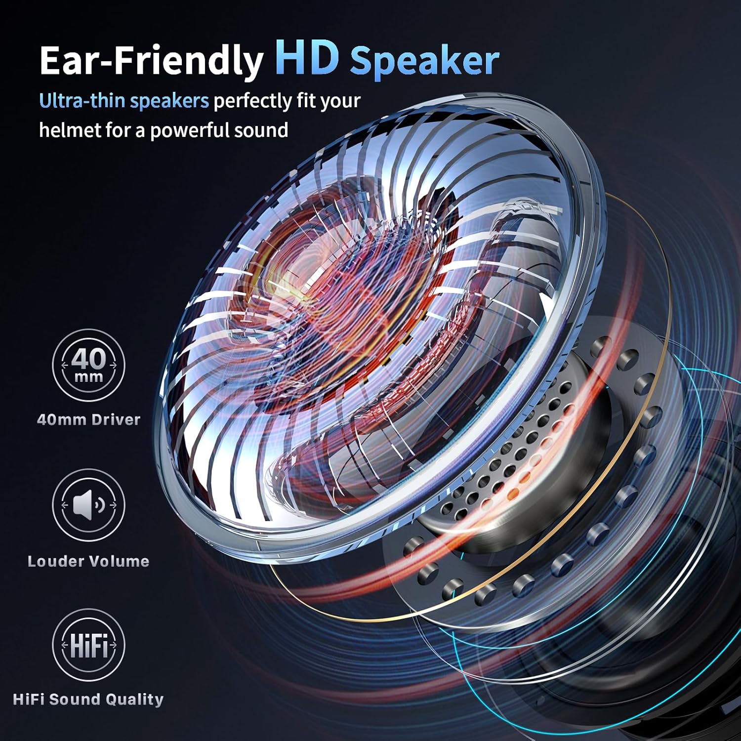 - Superior Sound Quality, HD Speakers: FX-S Bluetooth motorcycle headset is paired with Hi-Fi motorcycle speaker(Width: 40mm, Height: 0.9mm) that delivers every audio detail clearly and vividly, providing the most superior sound quality in any environment. It also fits perfectly into your helmet without putting any strain on your ears