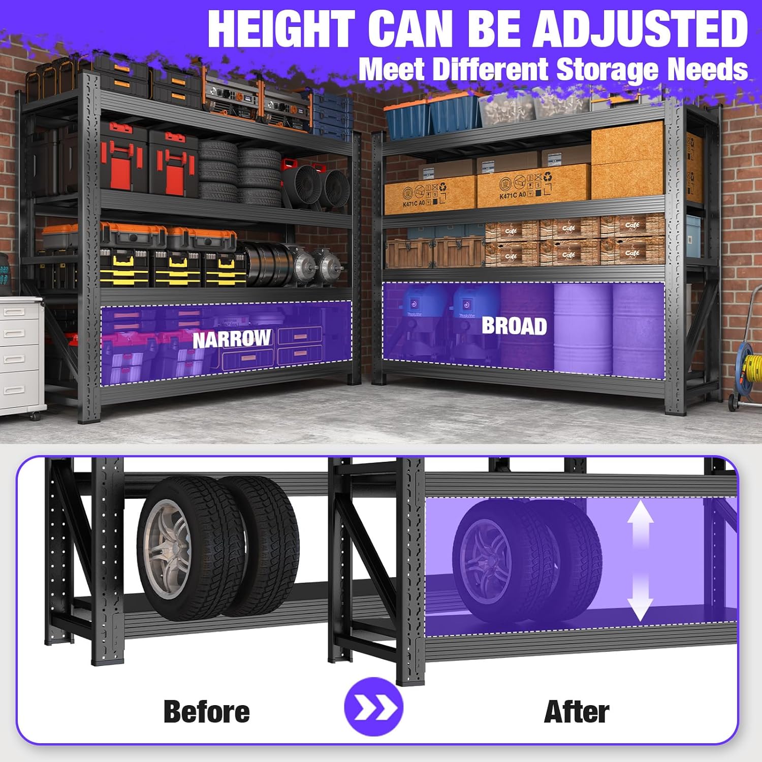 6000LBS Garage Shelving Heavy Duty, 4-Tier 59" W Storage Garage Shelves, Industrial Adjustable Metal Shelving Units for Garages, Warehouses, Kitchen, Black, 59" W x 24" D x 59" H