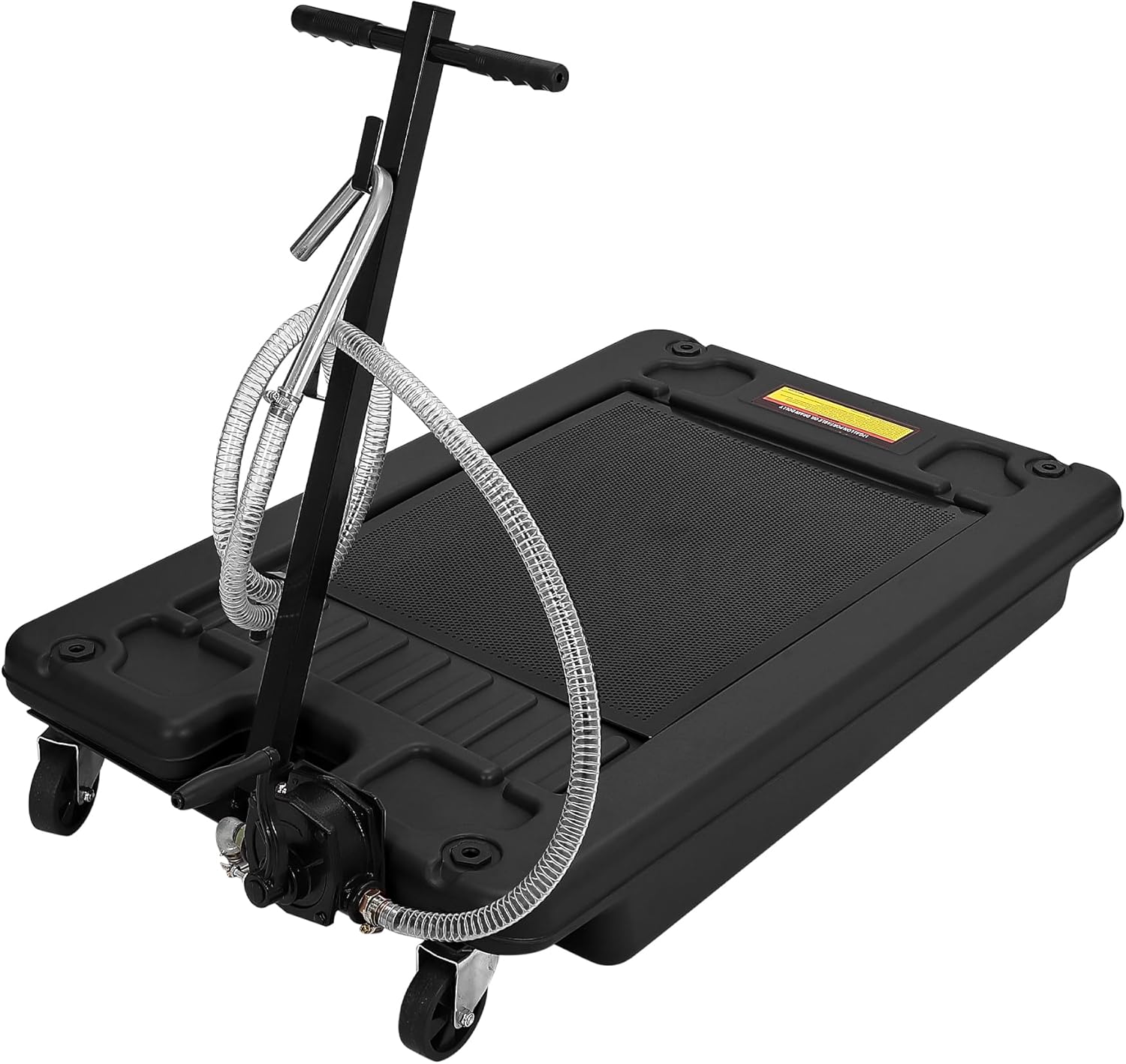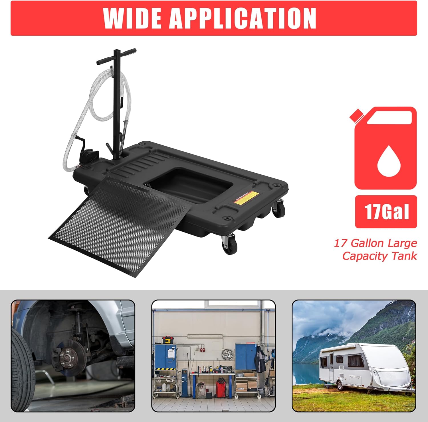 ‌17 Gal Low Profile Oil Drain Pan, Heavy Duty Mobile Oil Changing Pan with Hand Pump, 8 Ft Hose & Quick Drain Valve, Leak-Proof Design for Truck Car Motorcycle, Garage Workshop Use