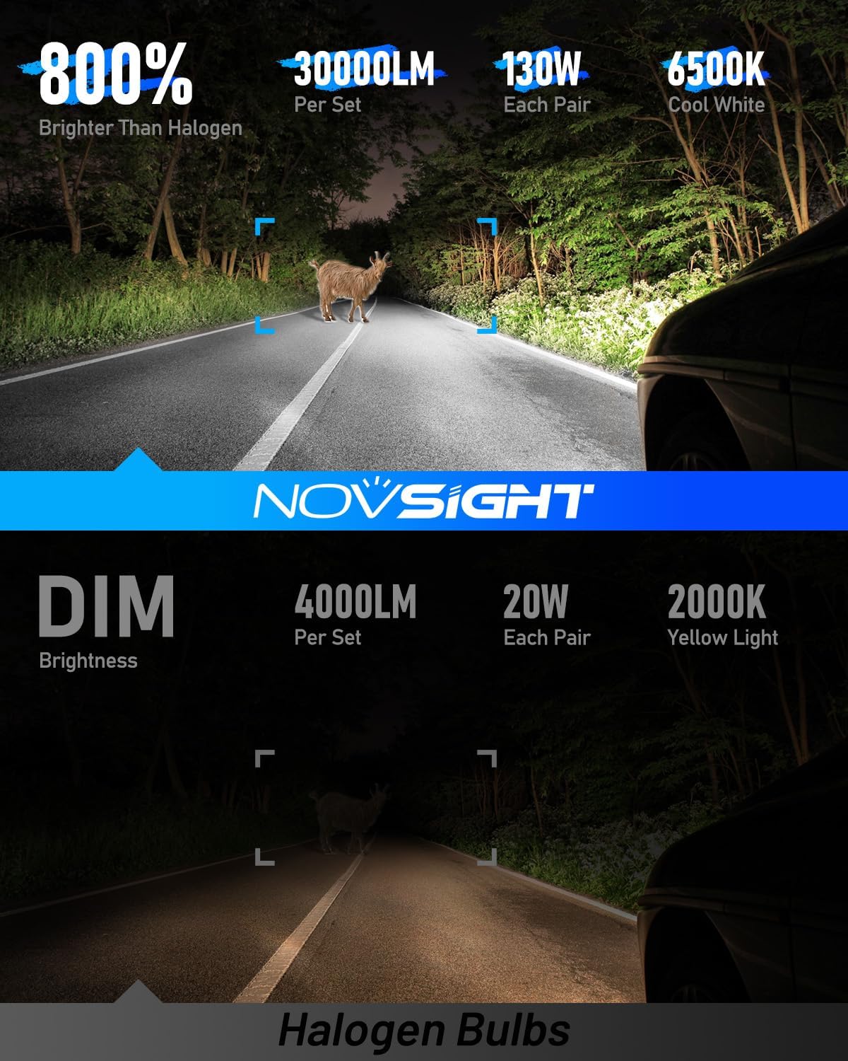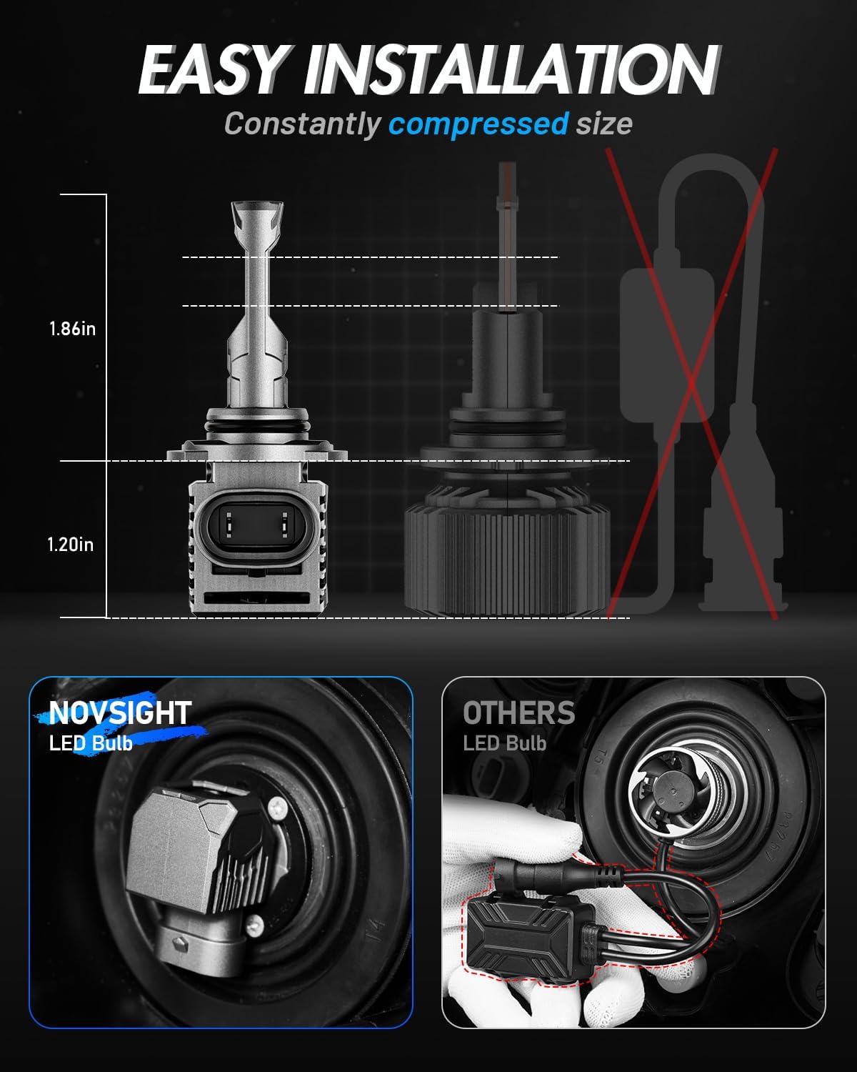 NOVSIGHT 9005 LED Fog Light Bulbs,50000 Lumens 6500K Cool White Light,800% Brightness,Plug and Play, Pack of 2
