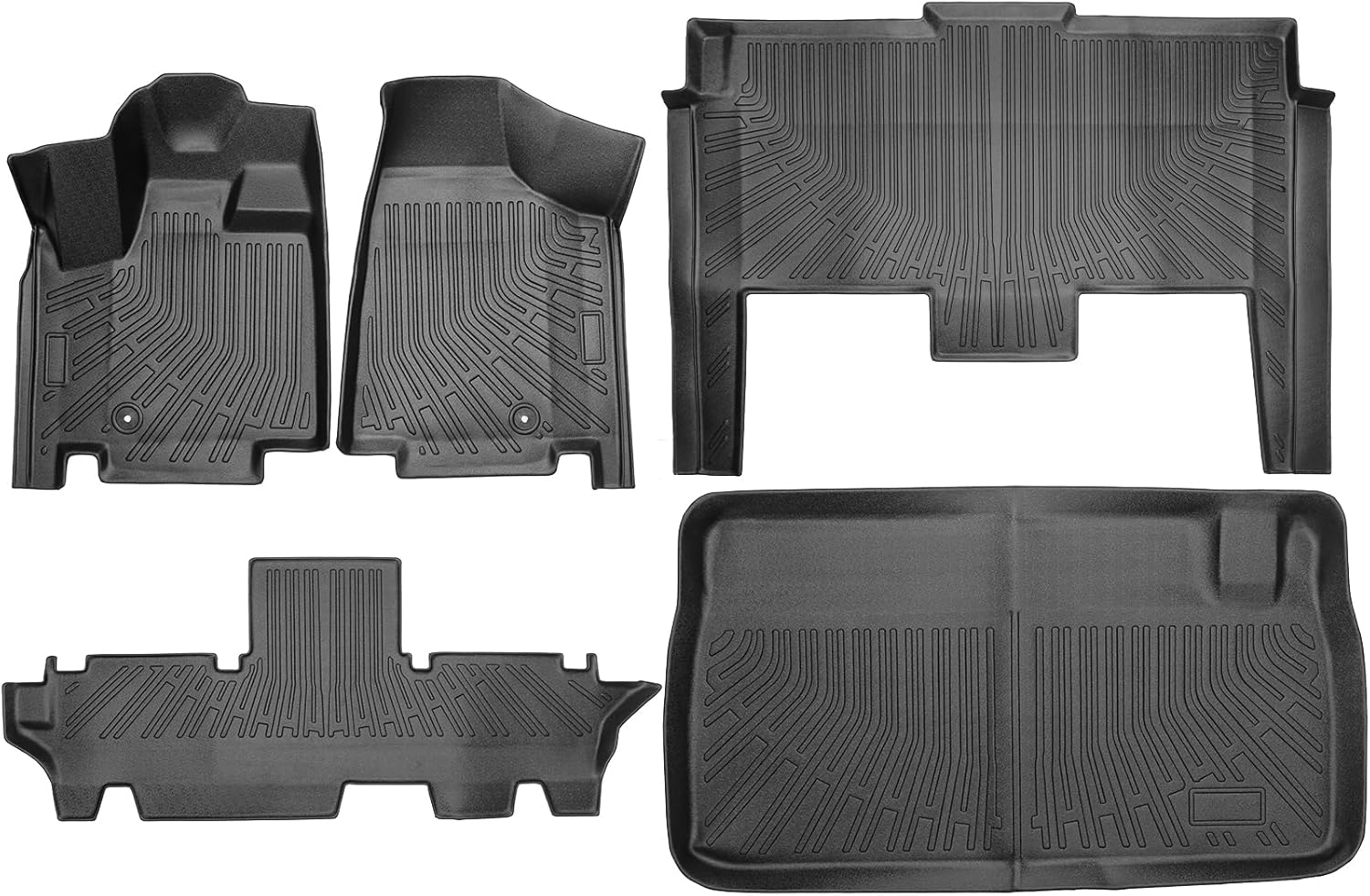 Floor Mats & Cargo Liner Set Fit for 2021-2011 Dodge Grand Caravan 7 Seat All Weather Protection TPE Anti-Slip Automotive Full Set Floor Liners Custom Dodge Grand Caravan Accessories