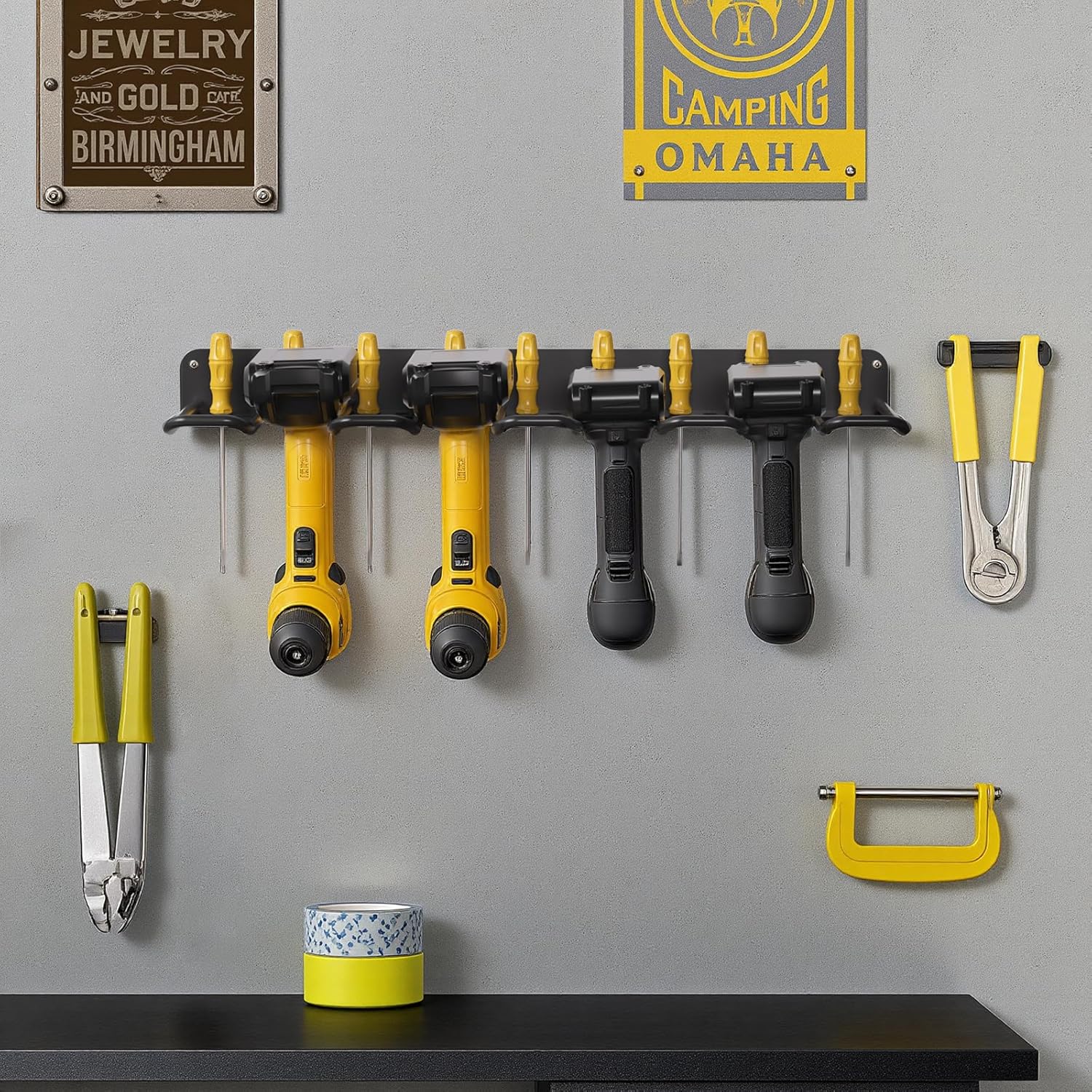 - SPACE-SAVING STORAGE SOLUTION : Converts cluttered walls or benches into a neatly organized workspace with dedicated slots for drills, screwdrivers, and accessories.